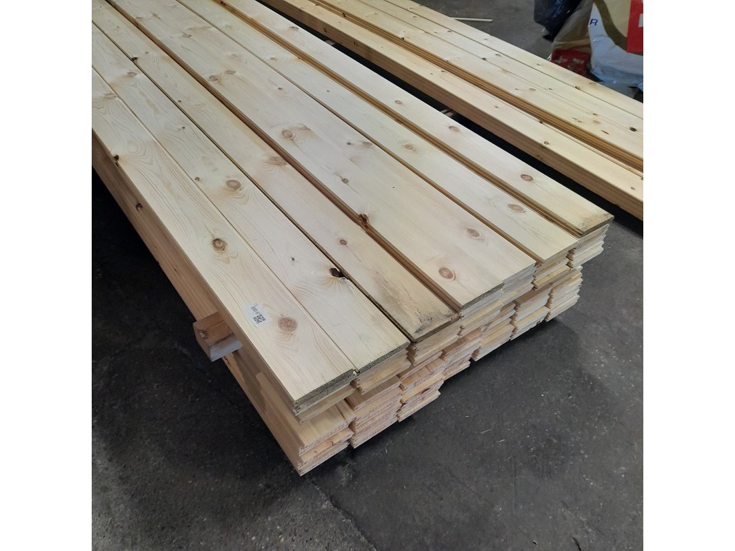 Ca. 38x grenen vloerdeel met mes en groef, 2,1 x 14,7 x 510 cm