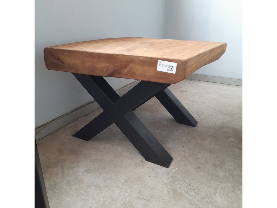 Product: Salontafel met metalen tafelpoten Materiaal: Hout en metaal Afmeting: 65 x 70 x 52 cm hoog Conditie: nieuw Specificaties: Met stalen X-poten, kokermaat 8x8 cm, zwart gepoedercoat