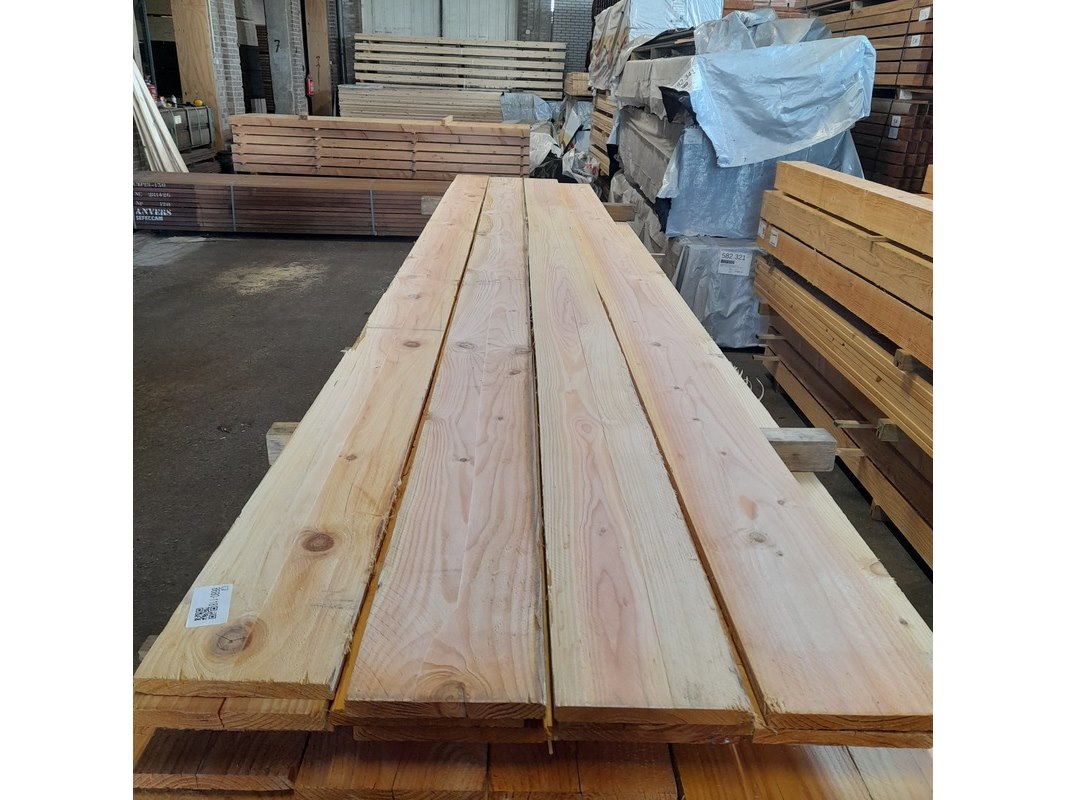 Product: Douglas plank Materiaal: Douglashout Afmeting: 2 x 19,5 x 400 cm Conditie: nieuw