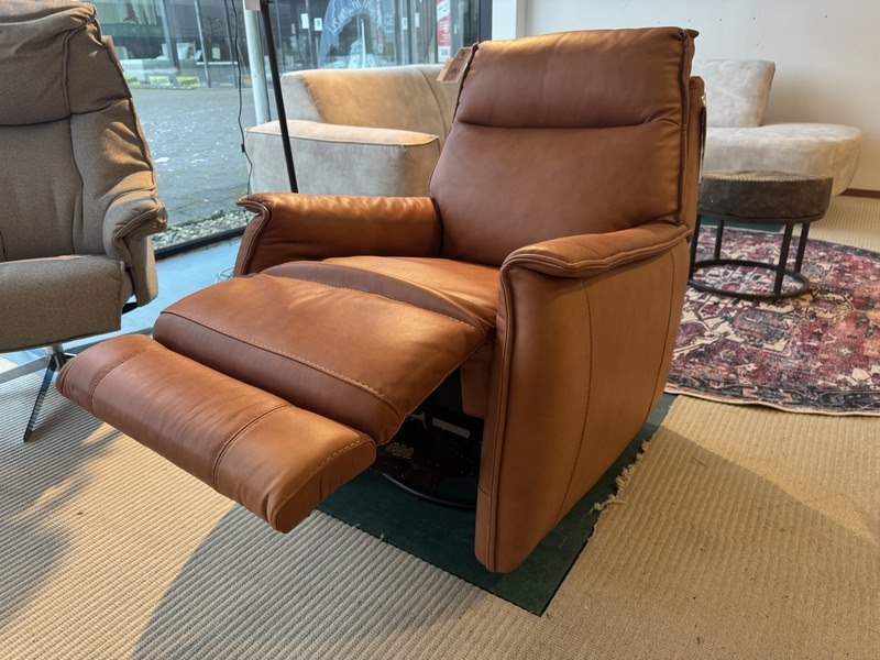 Product: Relax/schommelfauteuil Kleur: Cognac Materiaal: Leder Afmeting: M Specificaties: Nieuw uit verpakking