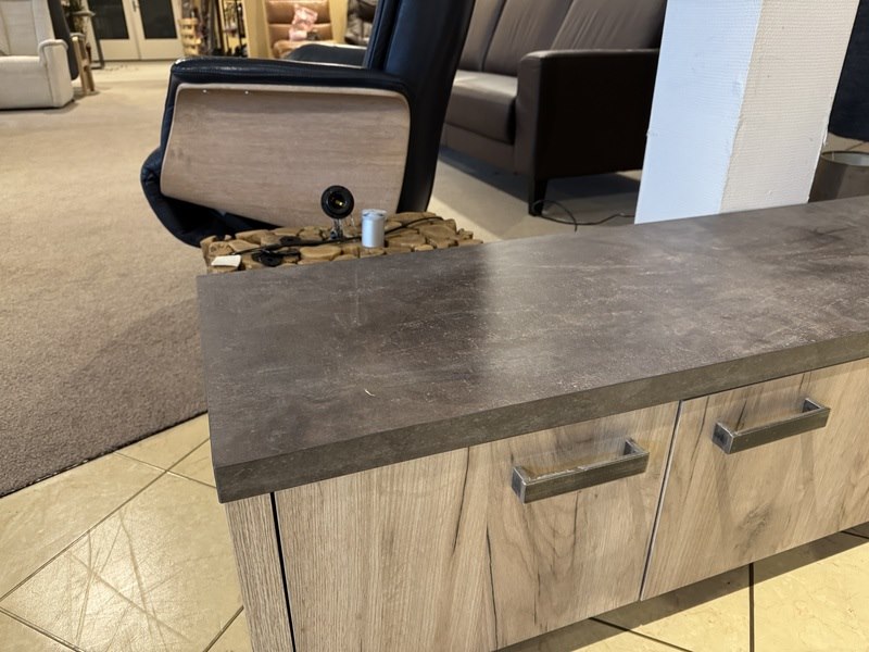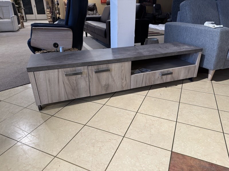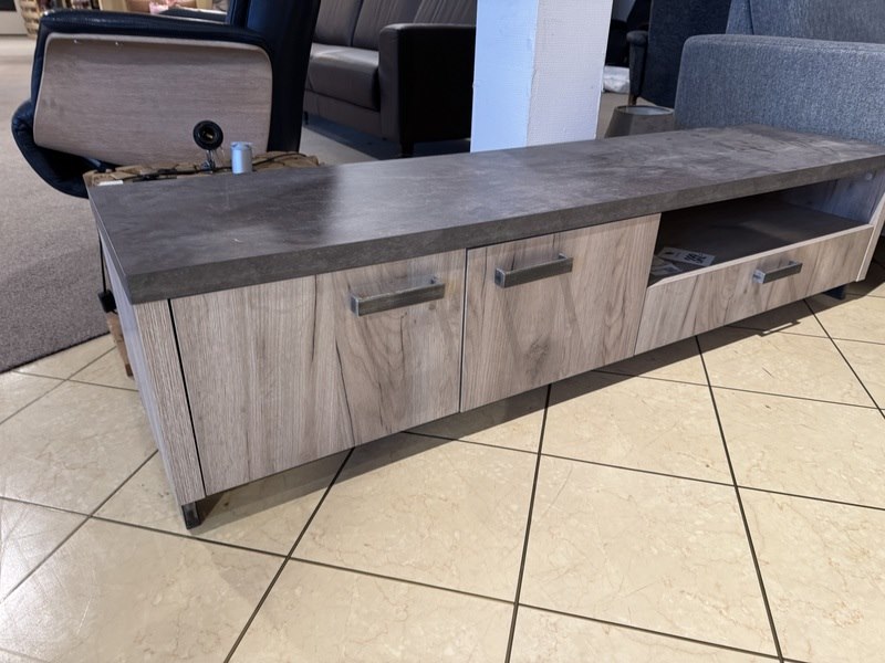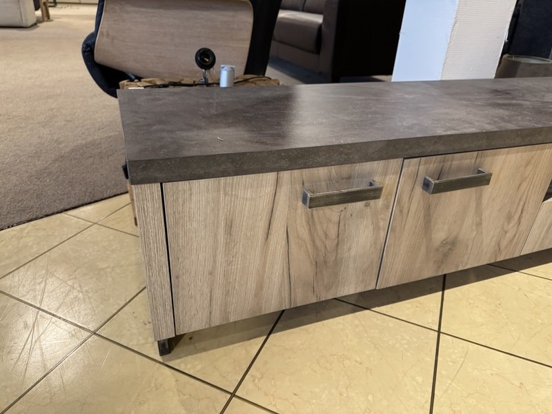 Product: TV- meubel Kleur: Licht eiken Materiaal: Lamalux Afmeting: 175x45x40 cm Specificaties: Showmodel Showmodellen kunnen gebruikssporen en/of beschadigingen hebben. Voor een goed beeld kun je gebruik maken van de kijkdag.