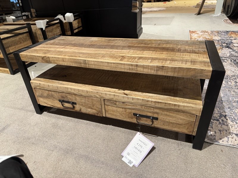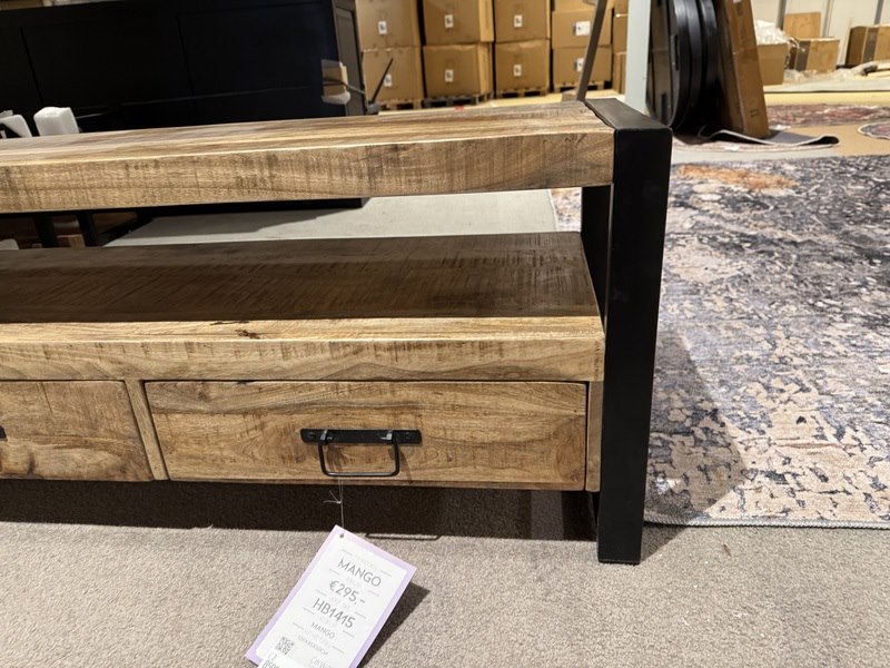 Merk: DKW woonvision Product: TV- meubel Kleur: Mango Materiaal: Mangohout Afmeting: 120x45x50 cm Specificaties: Nieuw in verpakking