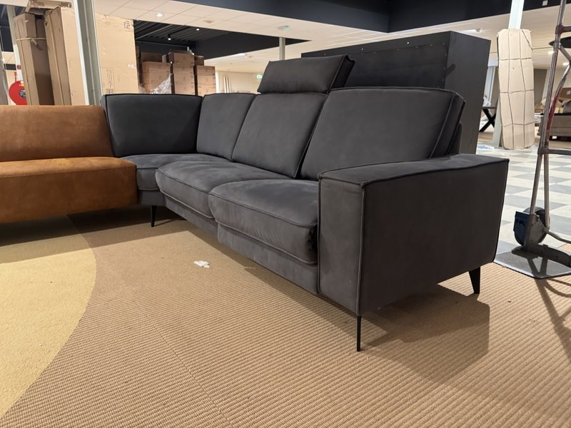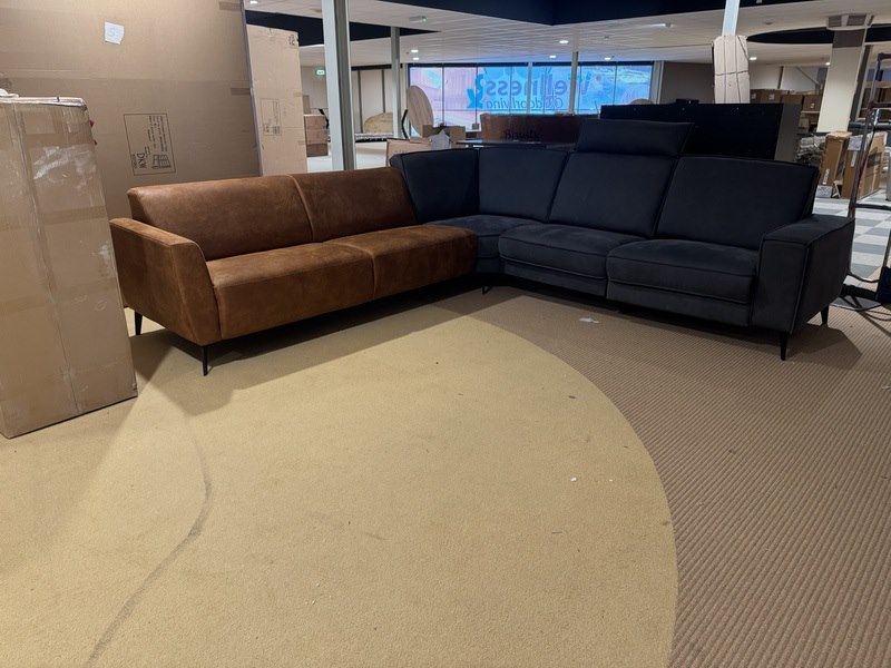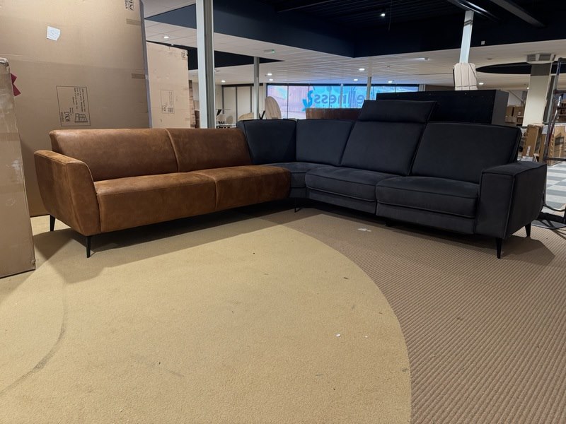 Hoekbank, cognac/antraciet
