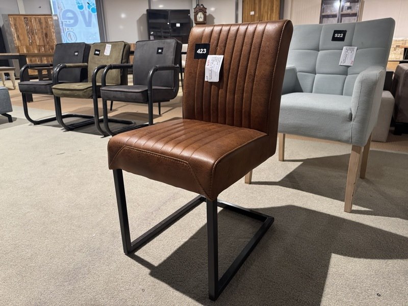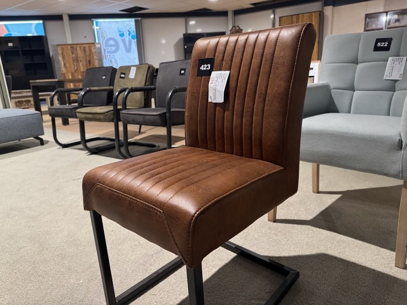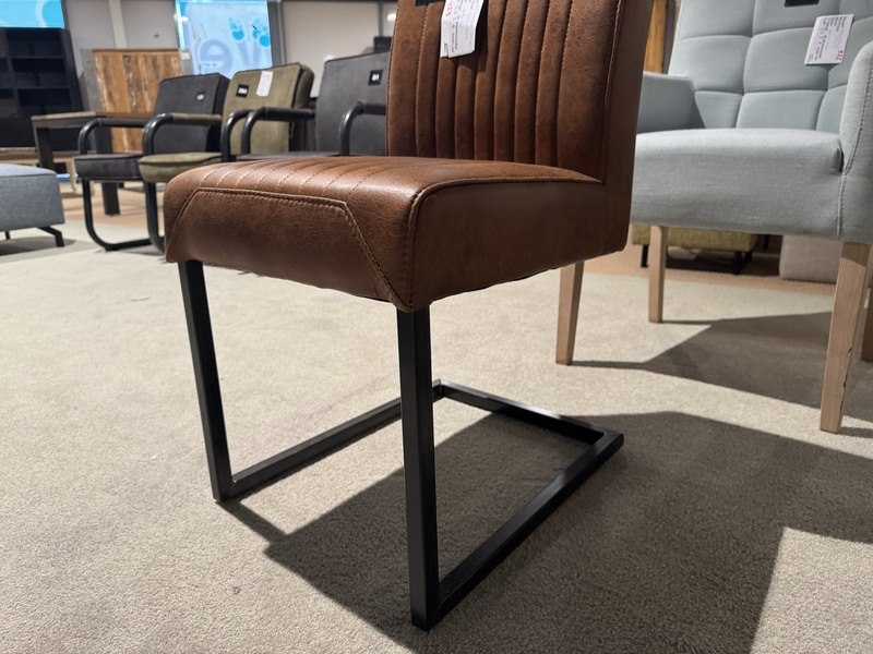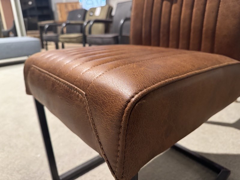 Product: Eetkamerstoel Kleur: Bruin Materiaal: Leder-look Specificaties: Showmodel
