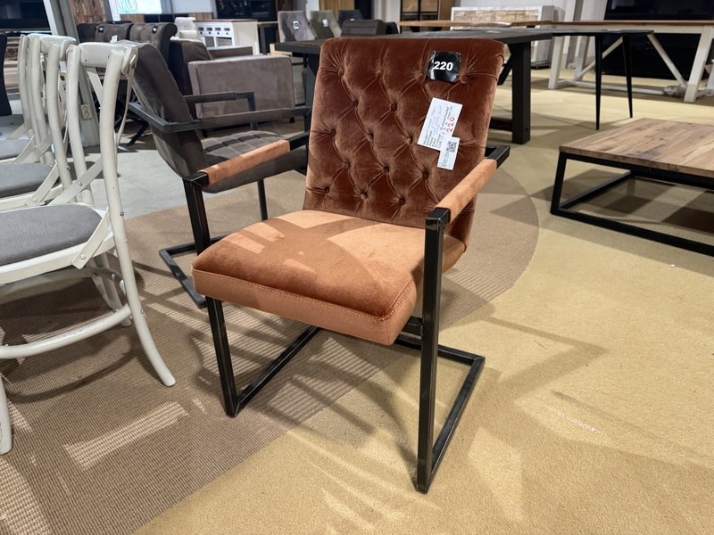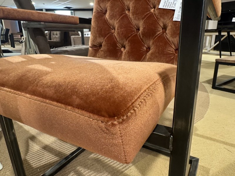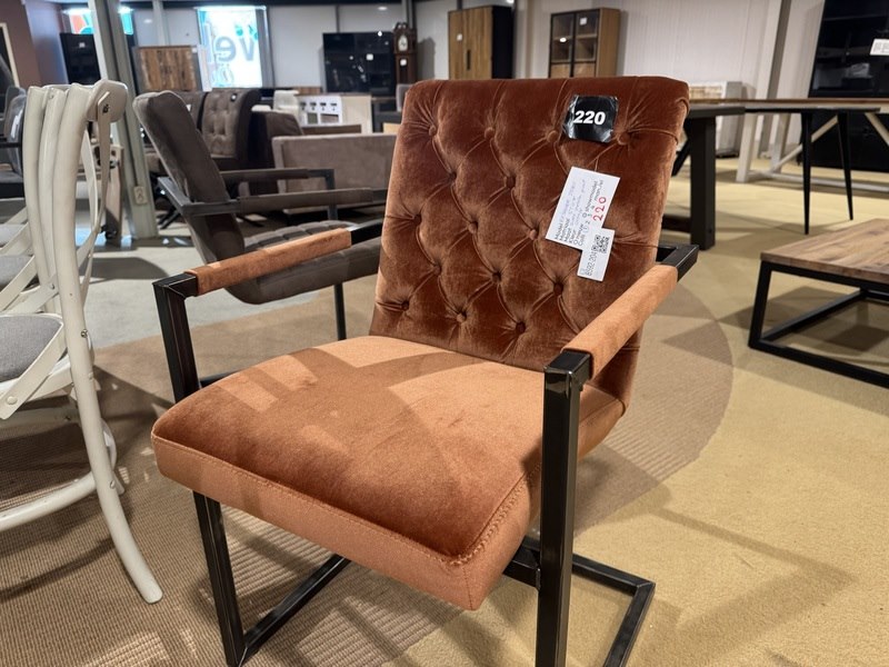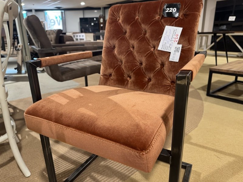 Product: Eetkamerstoel Kleur: Oranje Materiaal: Stof Specificaties: Showmodel, 1 colli