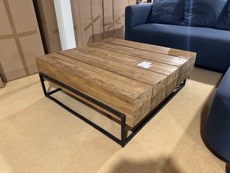 Product: Salontafel Kleur: Bruin Materiaal: Hout Afmeting: 108x108 cm Specificaties: Nieuw uit verpakking, 1 colli