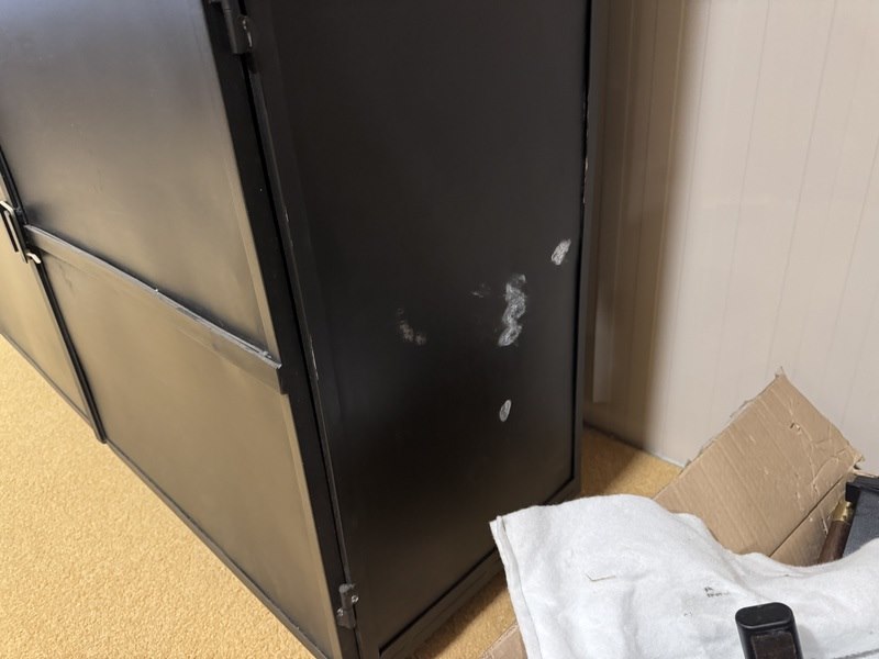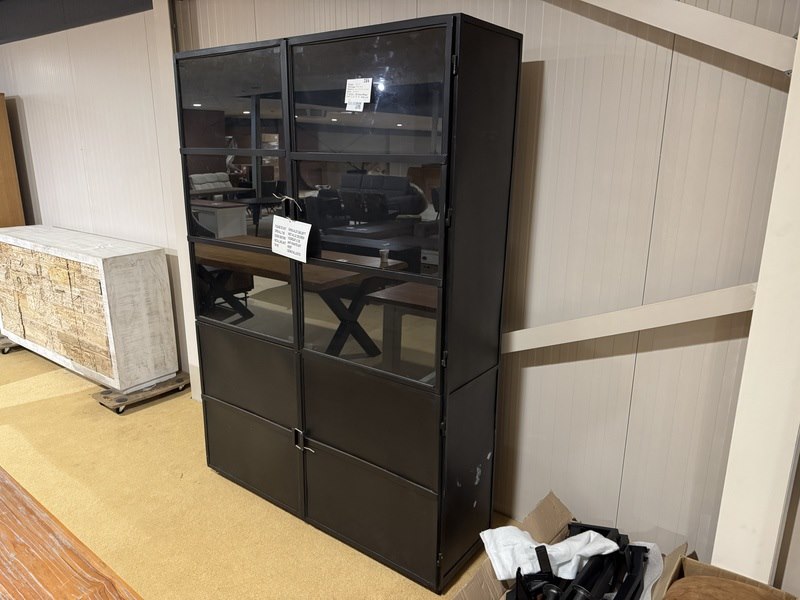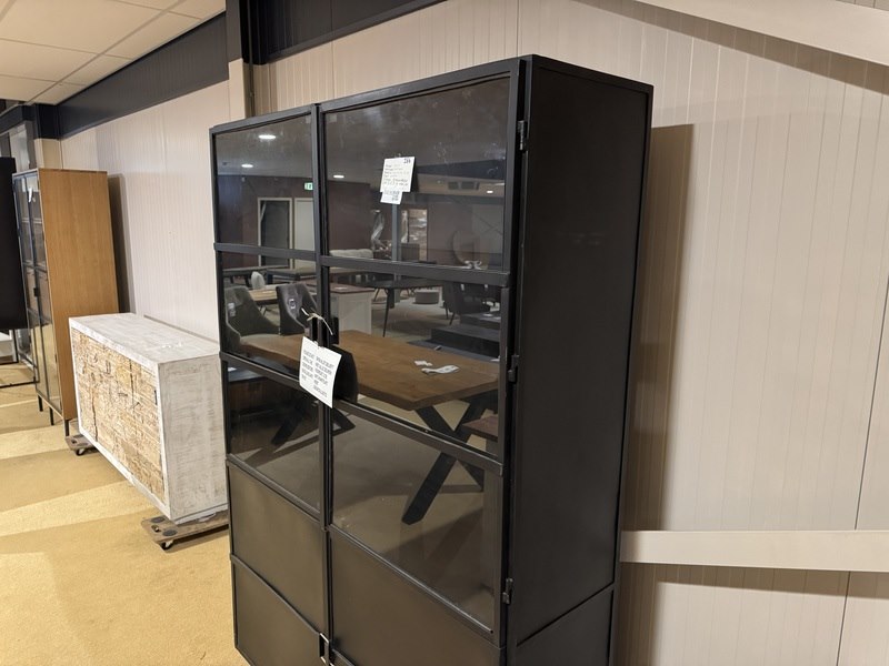 Product: Kast Kleur: Zwart Materiaal: Metaal Afmeting: 140x45x200 cm Specificaties: Showmodel, 1 colli