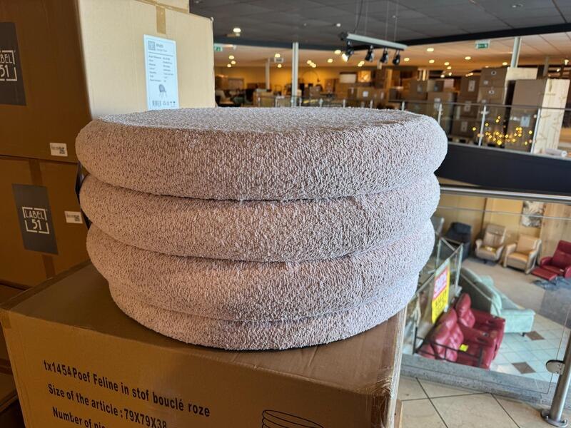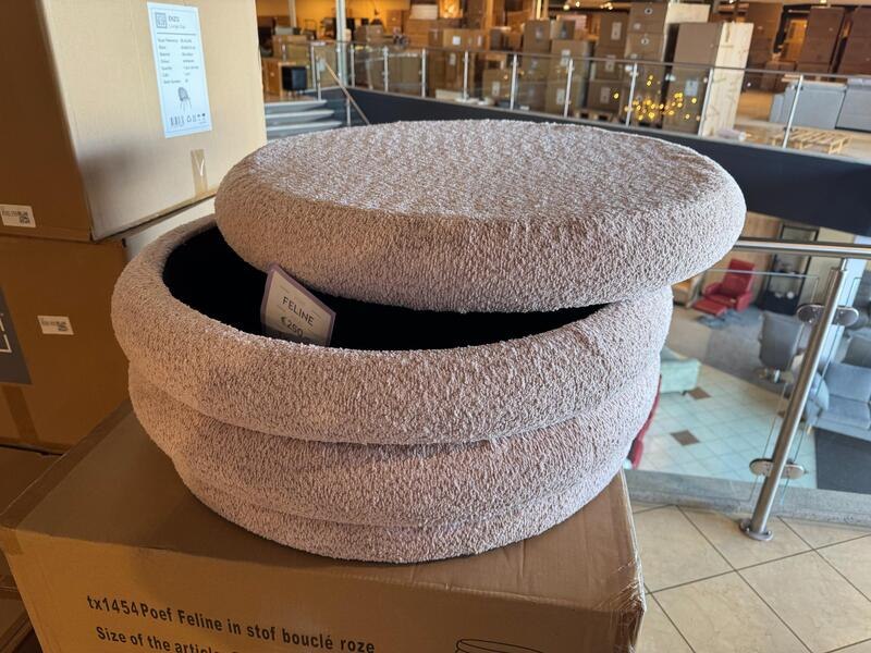 Merk: Home bound by KY Product: Poef Kleur: Roze Materiaal: Bouclé stof Afmeting: 79x79x38 cm Specificaties: Nieuw in verpakking, 1 colli