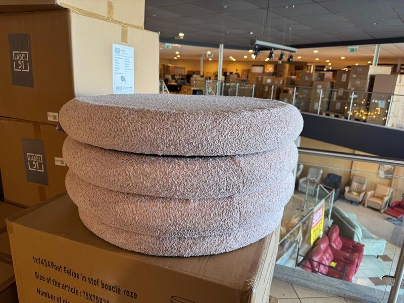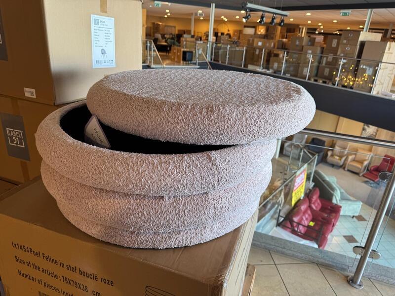 Merk: Home bound by KY Product: Poef Kleur: Roze Materiaal: Bouclé stof Afmeting: 79x79x38 cm Specificaties: Nieuw in verpakking, 1 colli