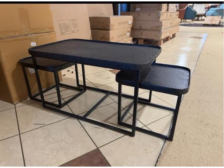 Product: Set van 3 salontafels Kleur: Zwart Materiaal: Liquid metal Afmeting: 70x70x35 cm, 35x35x30 cm, 35x35x30 cm Specificaties: Nieuw in verpakking, 1 colli
