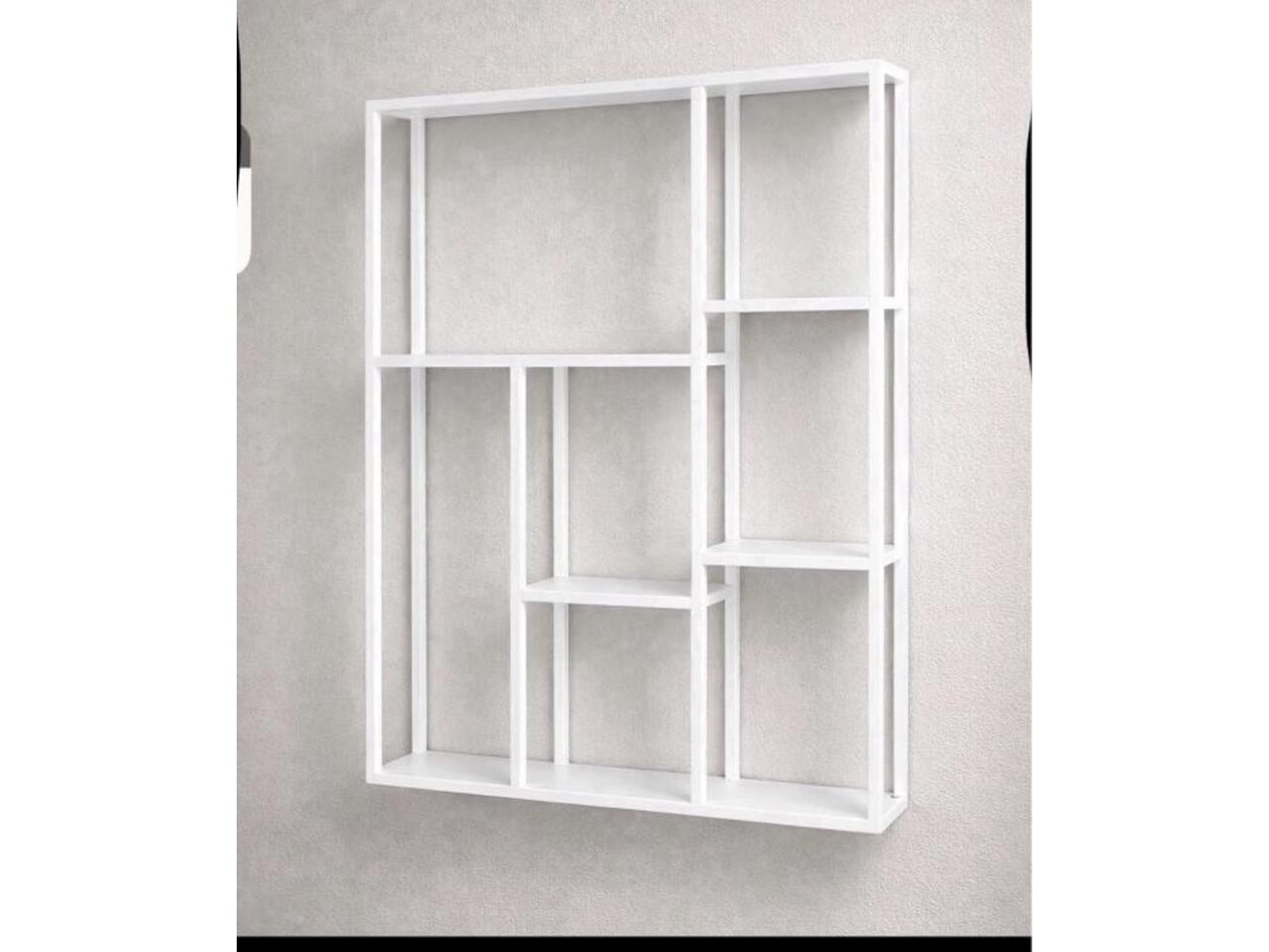 Product: Wandrek Kleur: Wit Materiaal: Cold roll steel Afmeting: 78x93x6 cm Specificaties: Nieuw in verpakking, 1 colli