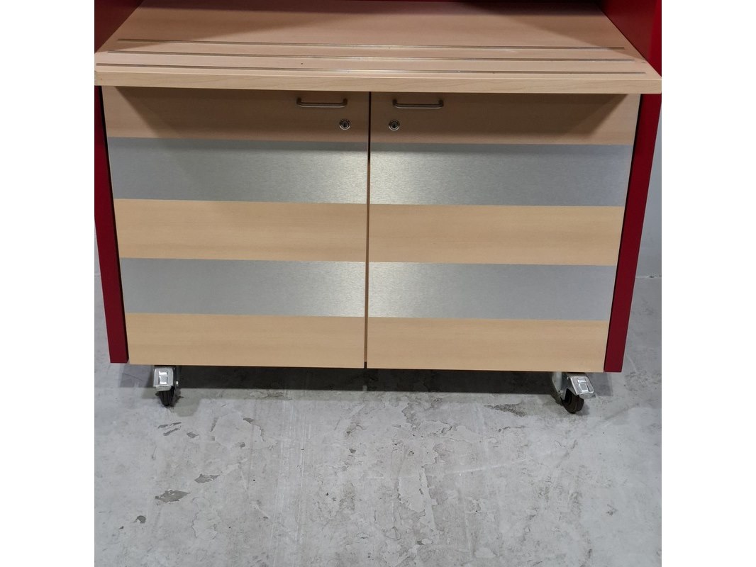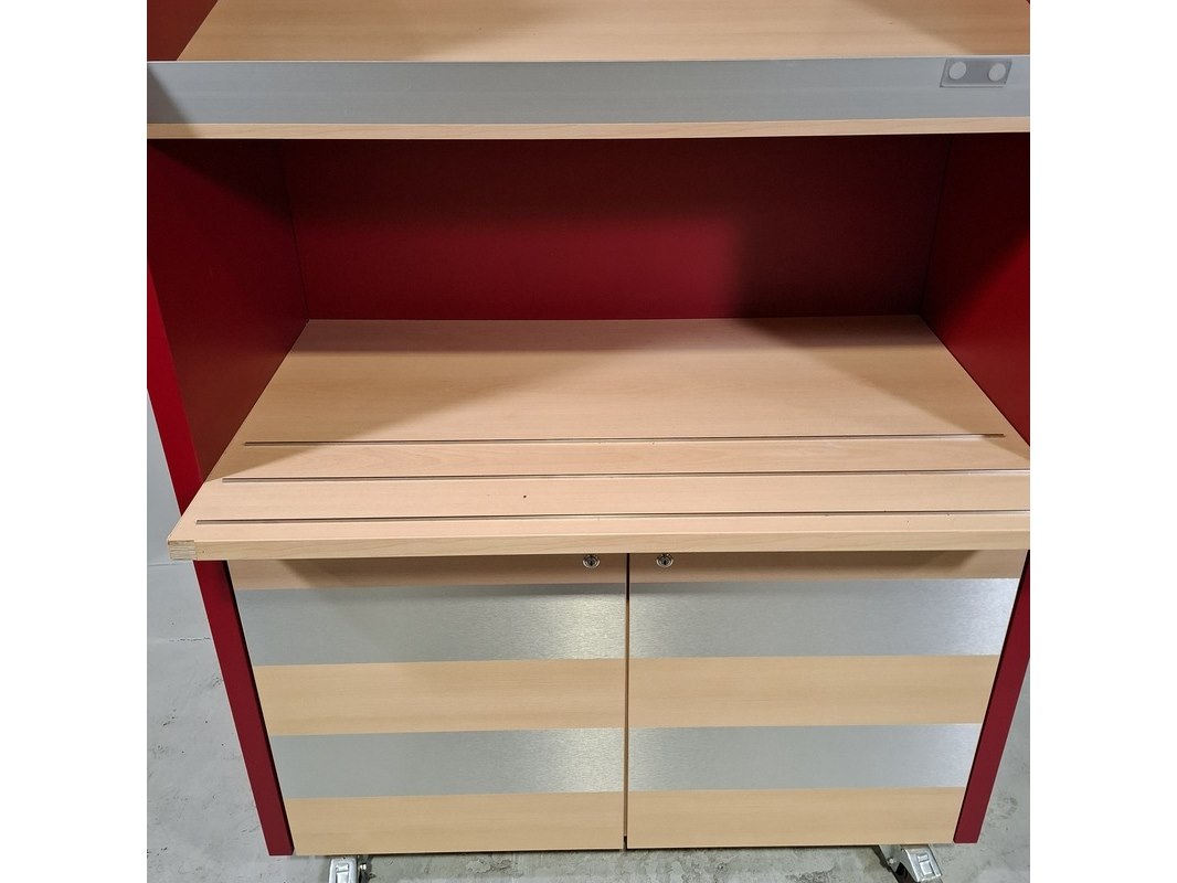 Product: Kantinemeubel Afmeting: o.a. lxbxh ca. 120x120x93 cm Conditie: gebruikt Specificaties: 1x lxbxh ca. 120x120x93 cm 1x hxbxd ca. 159x120x61 cm