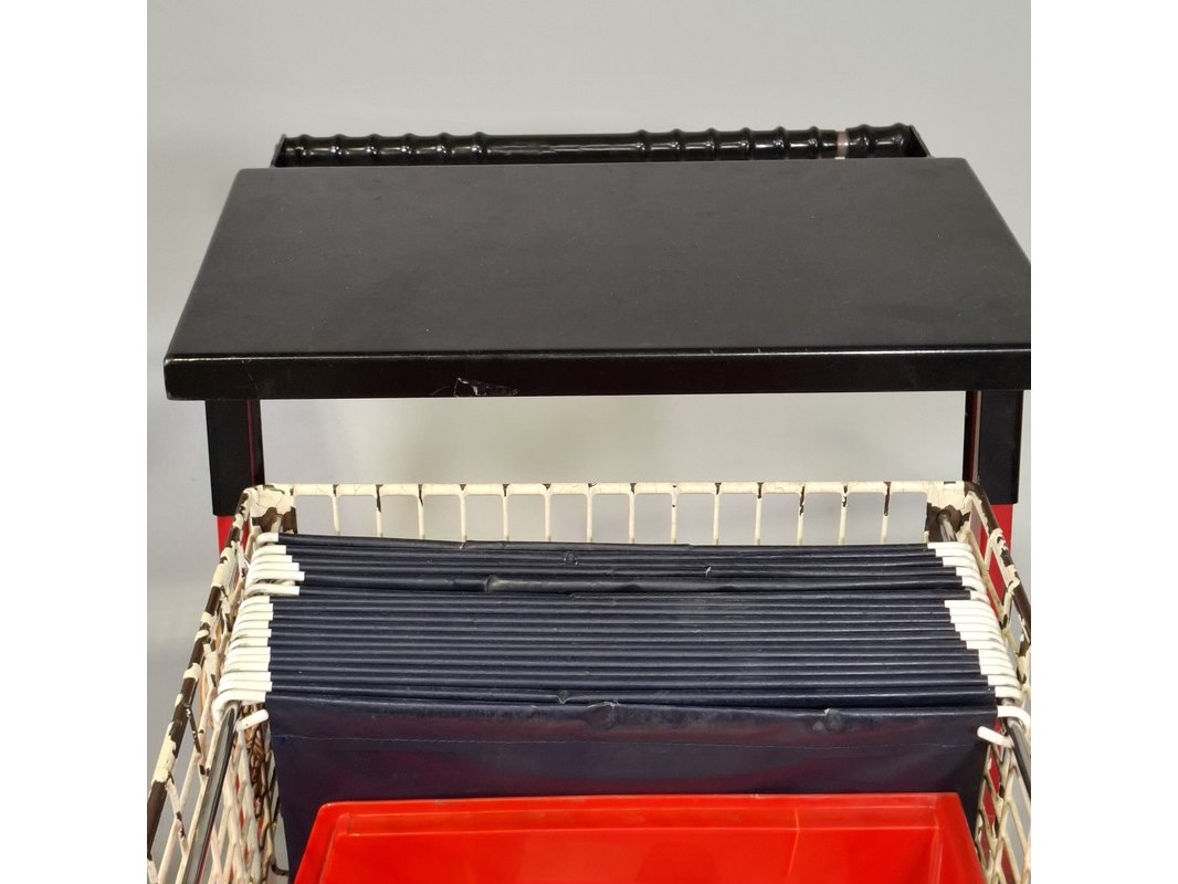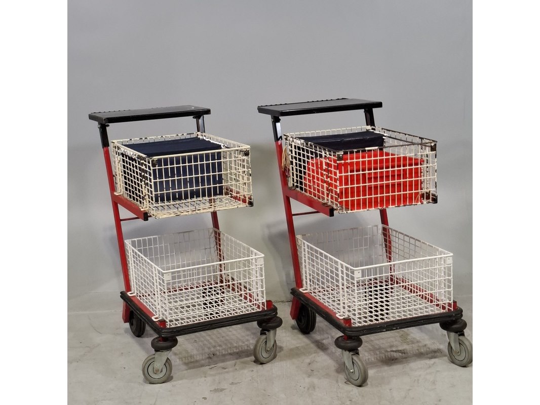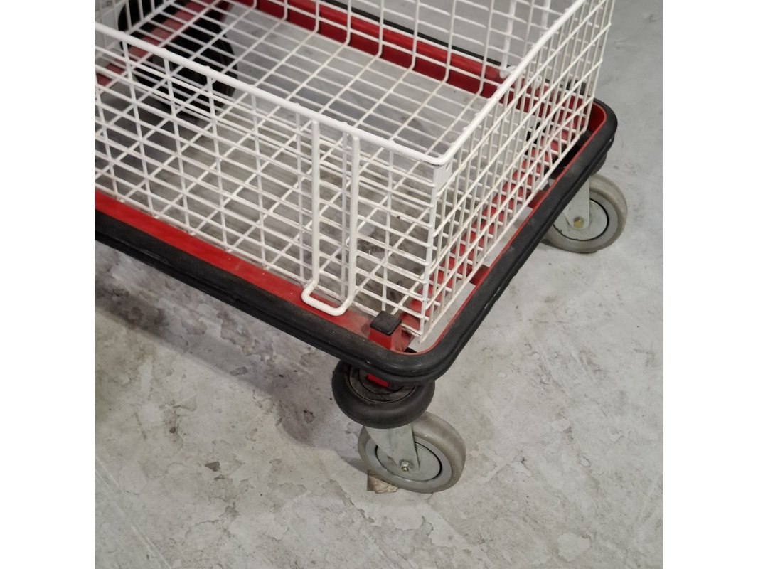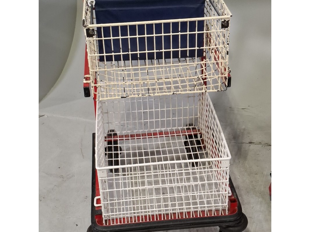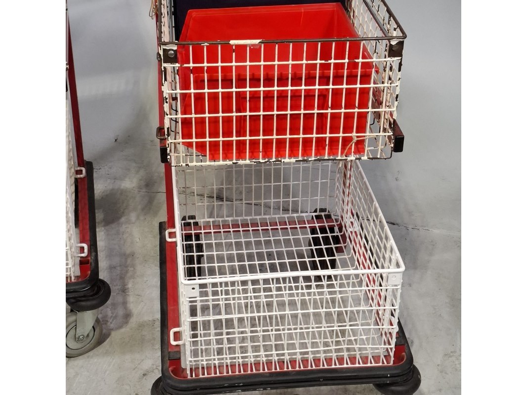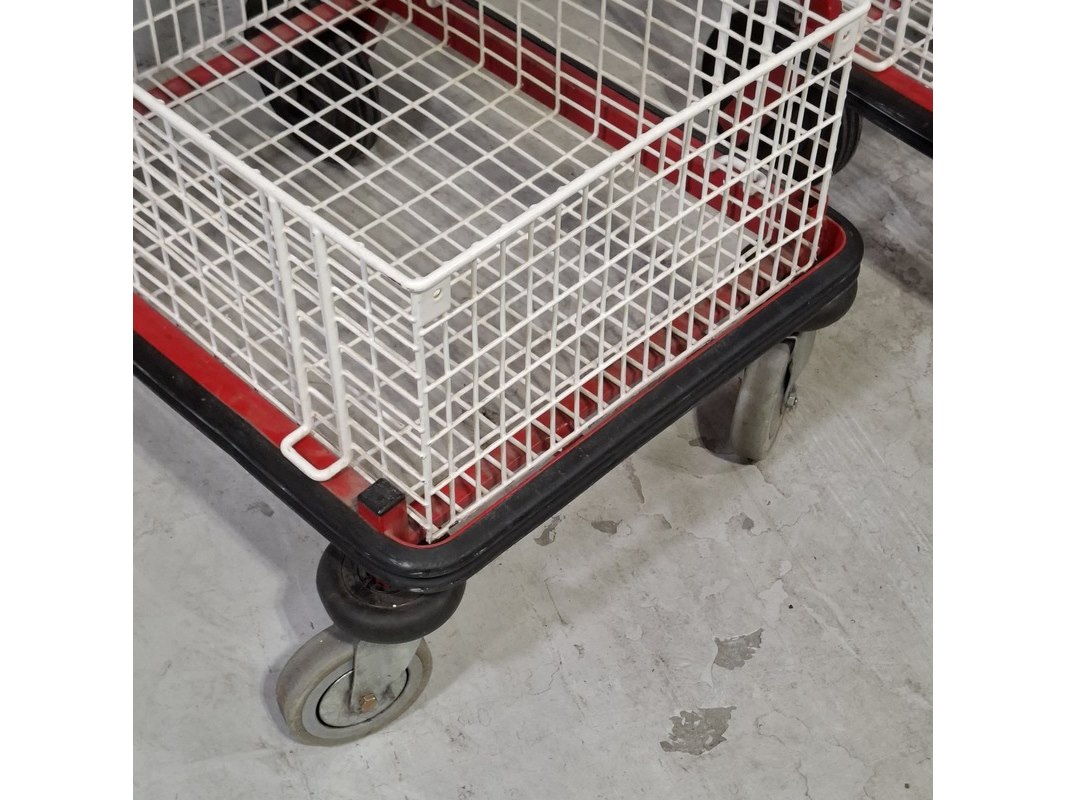 Product: Winkelkar Afmeting: LxBxH ca. 110x60x104 cm. Conditie: gebruikt Specificaties: Technische staat en compleetheid onbekend. De karren hebben diverse beschadigingen
