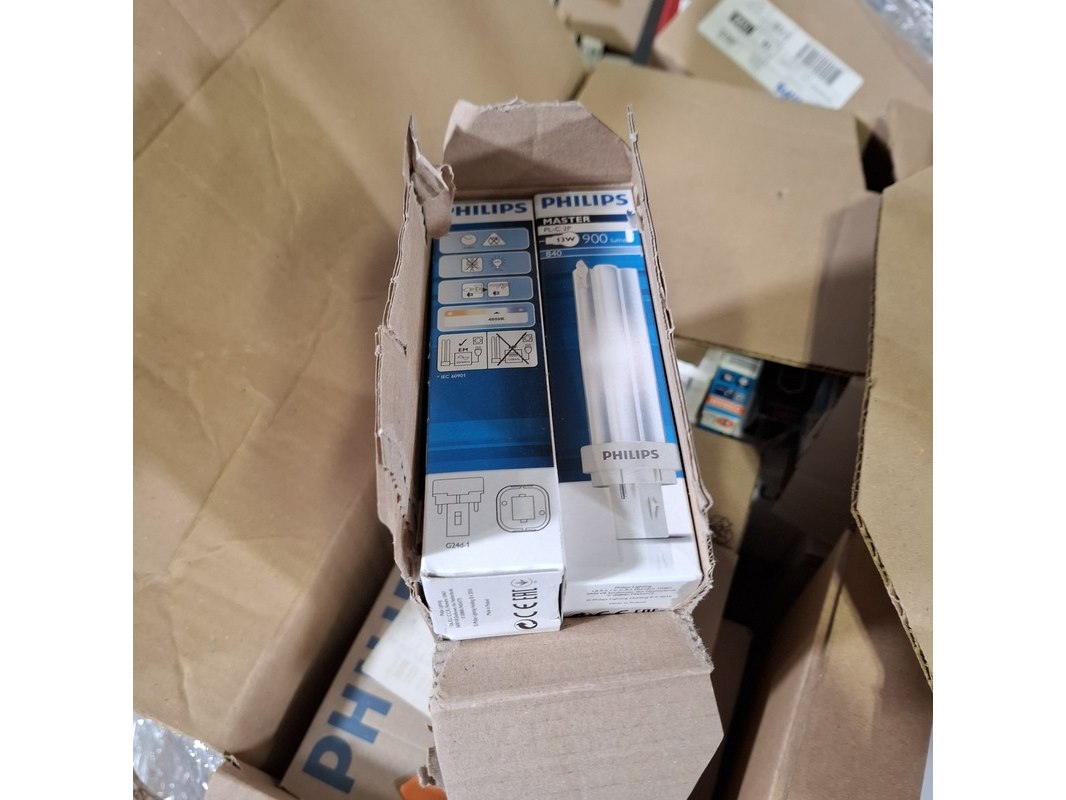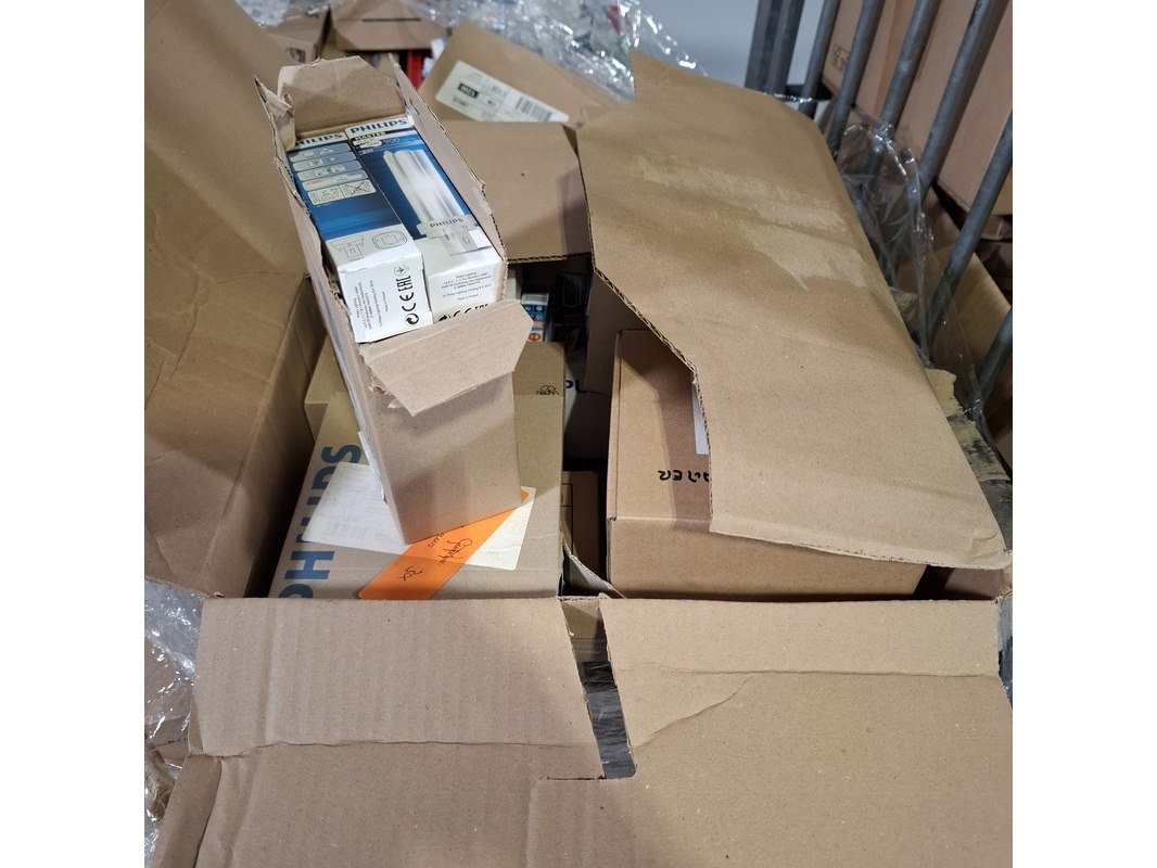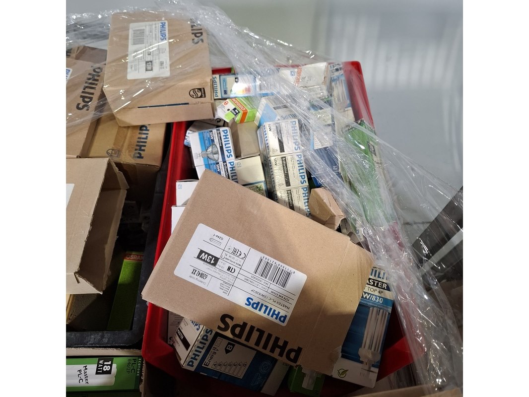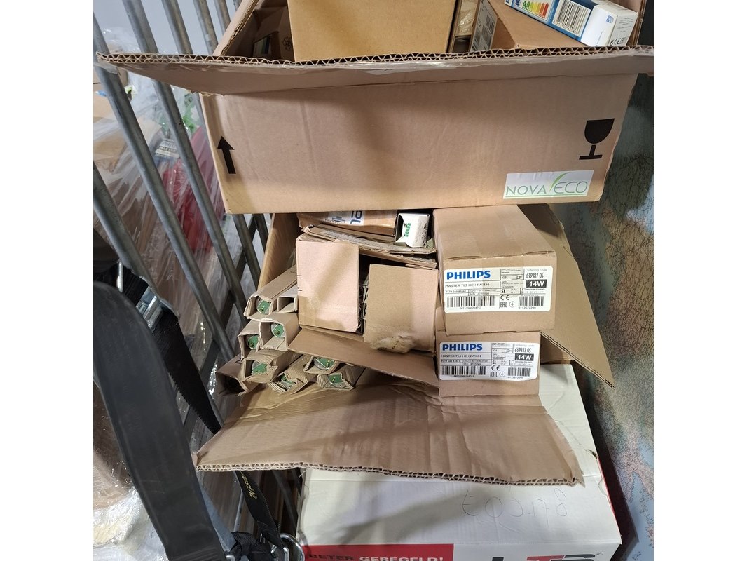 Merk: o.a. Philips Product: Diverse lampen en 1x whiteboard Conditie: gebruikt Specificaties: Diverse soorten en maten. Exclusief afgebeelde rolcontainer