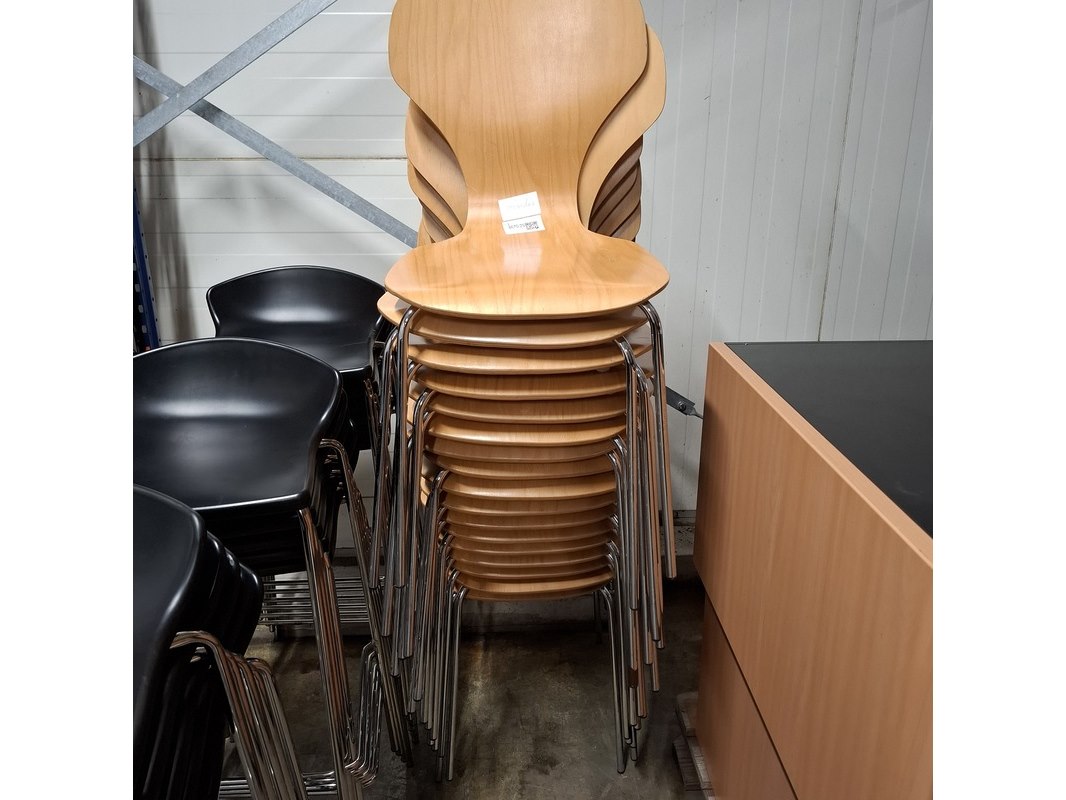 Merk: Danerka Product: Kantinestoel Afmeting: Zithoogte ca. 51 cm. Conditie: gebruikt Specificaties: De stoelen hebben diverse beschadigingen Technische staat en compleetheid onbekend. Exclusief pallet