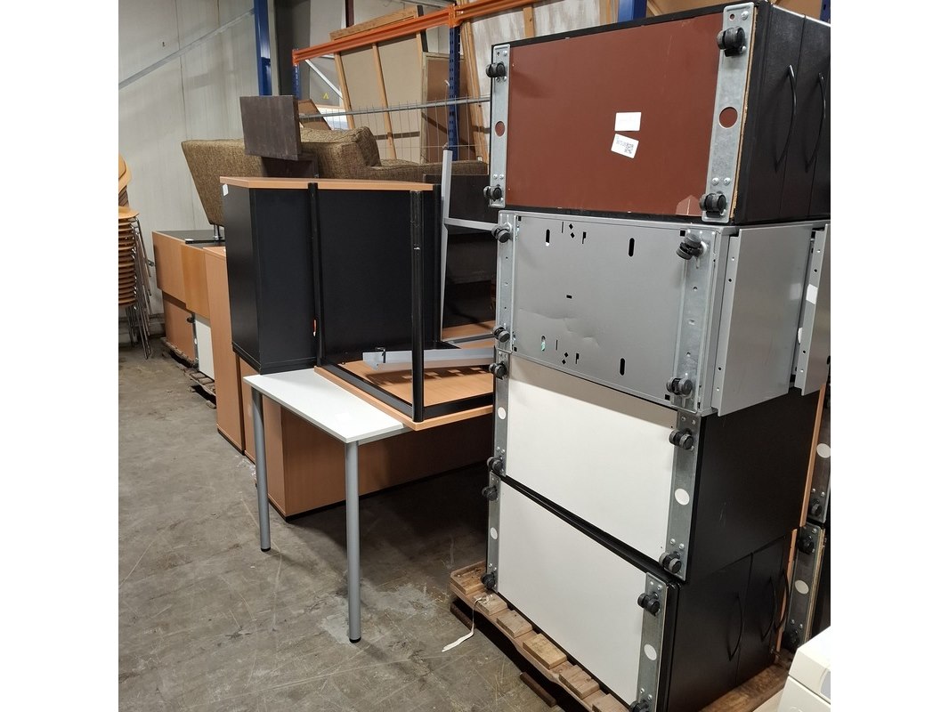 Merk: Frigor Product: partij diverse bedrijfsinventaris Afmeting: Diverse maten Conditie: gebruikt Specificaties: Bestaande uit kasten, ladeblok, bankstel, tafels en etc. De items hebben diverse beschadigingen en gebreken. Technische staat en compleetheid onbekend.