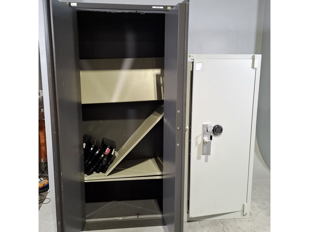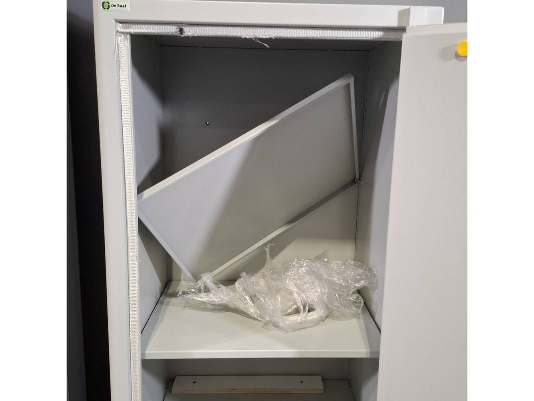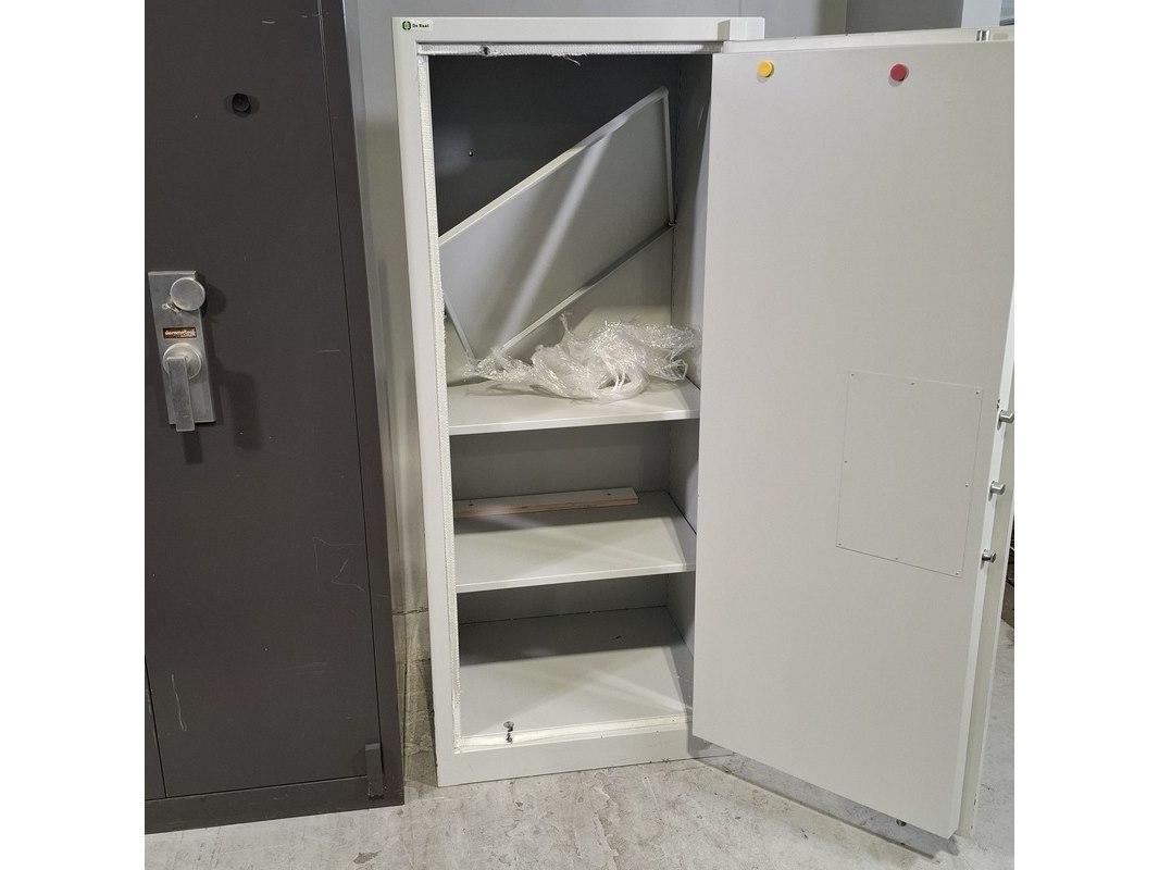 Product: Werkplaatskast en brandkast Afmeting: o.a. hxbxd ca. 195x95x55 cm Conditie: gebruikt Specificaties: Werkplaatskast inclusief sleutel. Brandkast de Raat hxbxd ca. 158x67x55 cm Inclusief sleutel, cijfercombinatie cijferslot ontbreekt. Is onbekend.