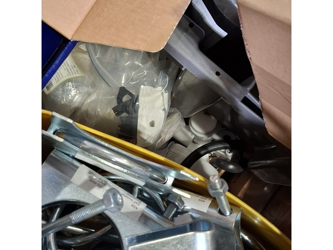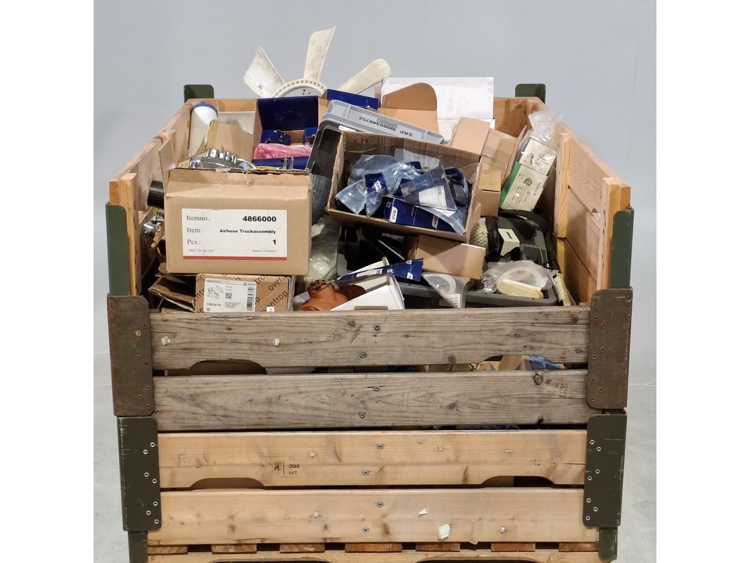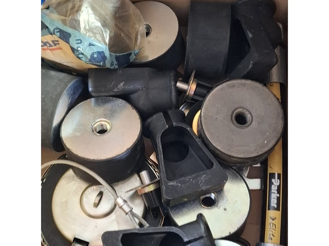Merk: o.a. DAF Product: Diverse onderdelen Conditie: gebruikt Specificaties: Bestaande uit o.a. lagers, Volvo Penta bediening, klemmen, ventilator, wielkeggen, filters, etc Technische staat en compleetheid onbekend. Exclusief pallet.