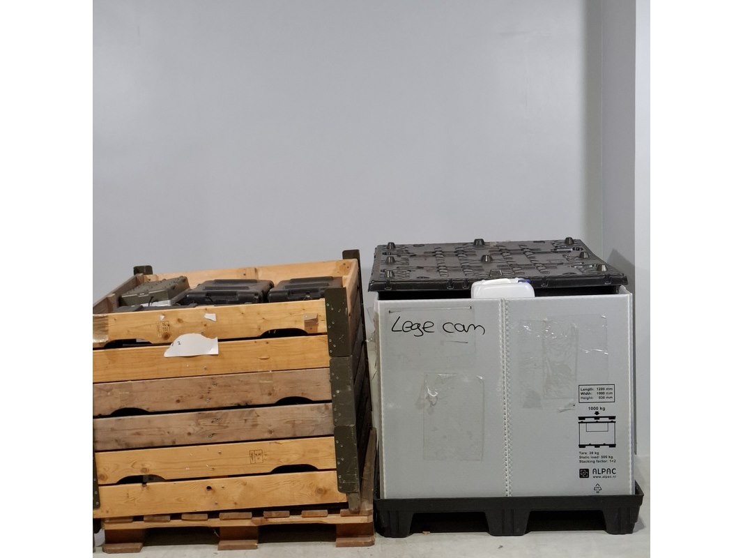 Product: Diverse koffers en jerrycans Specificaties: Diverse soorten en maten. Jerrycans inclusief uni-pak Technische staat en compleetheid onbekend. Exclusief pallet.