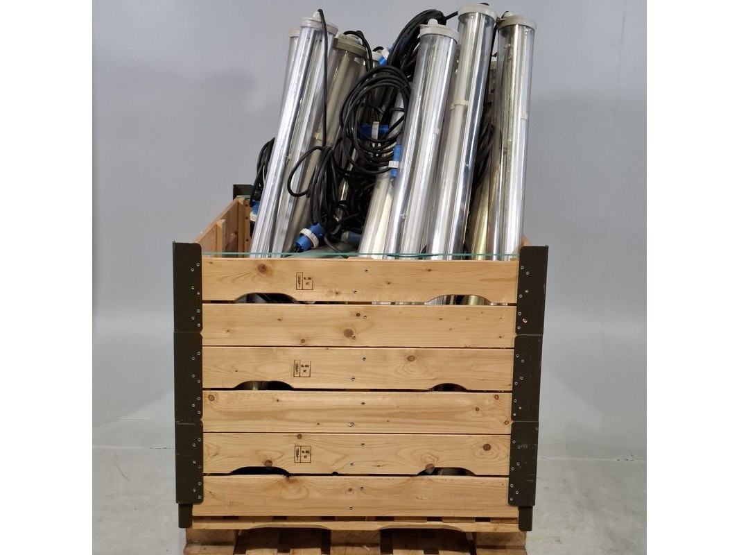 Product: Partij lichtarmaturen Afmeting: Lengte ca. 130 cm Specificaties: Uitgerust met CE stekker. Technische staat en compleetheid onbekend. Exclusief pallet.