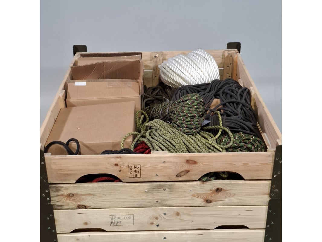 Product: Diverse touwen Specificaties: Diverse soorten en maten. Technische staat en compleetheid onbekend. Exclusief pallet.