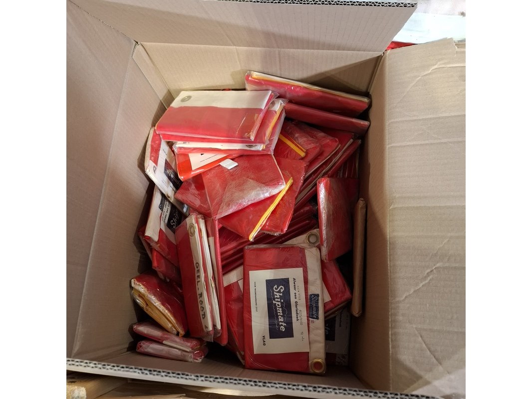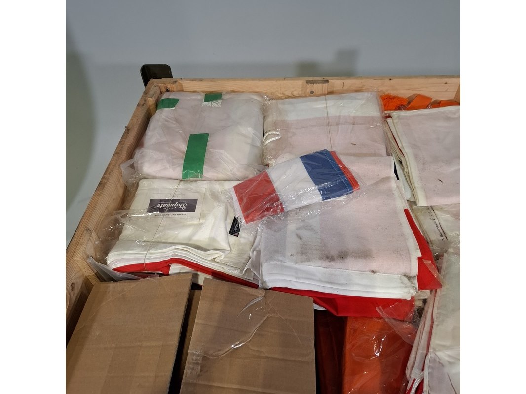 Merk: o.a. Shipmate Product: Partij diverse vlaggen Conditie: gebruikt Specificaties: Diverse soorten en maten. Exclusief palletkist.