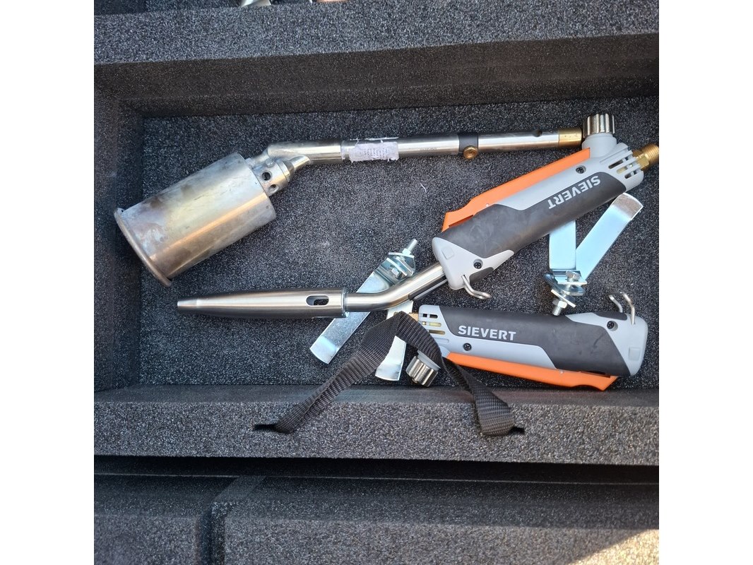 Brandslangen, snijbrander set en hydrauliek slang op haspel, sievert/holmatro