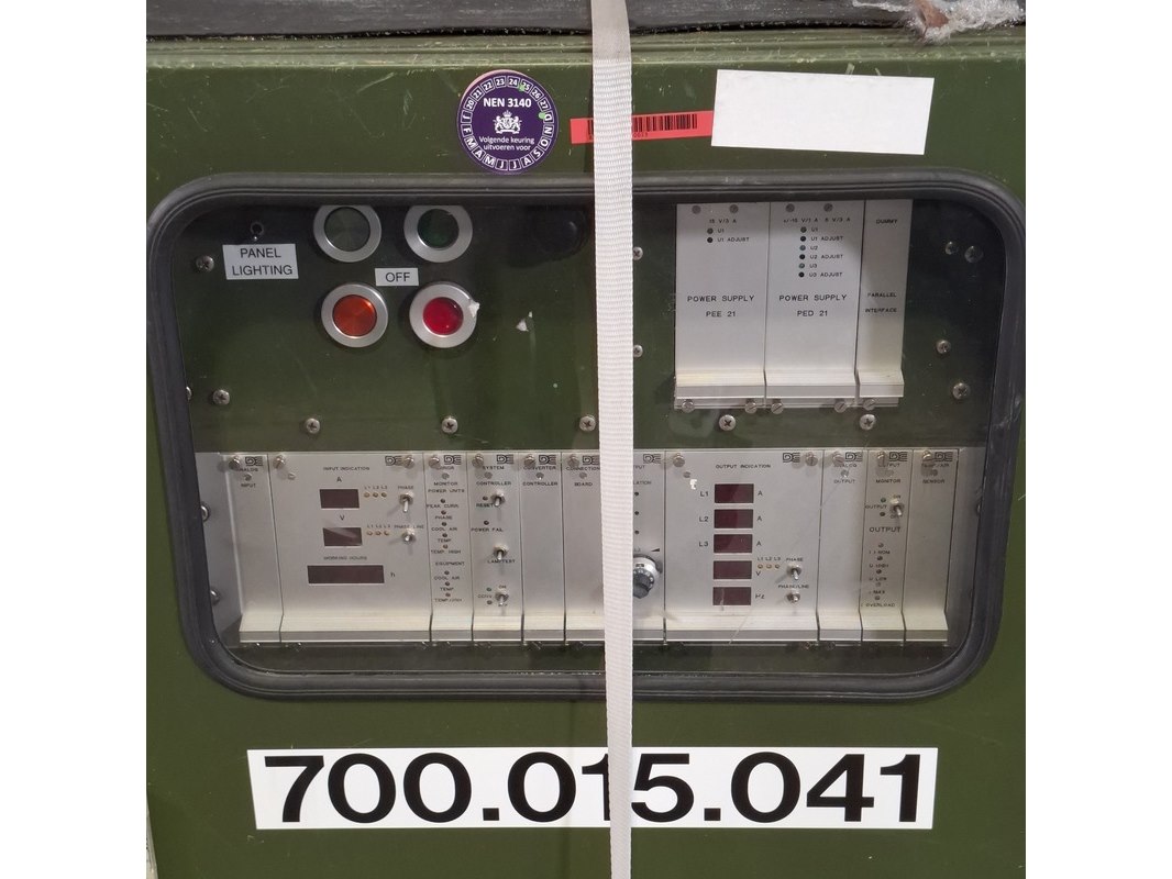 Merk: De Drie Electronics Product: Omvormer Afmeting: lxbxh ca. 123x61x115 cm Conditie: gebruikt Specificaties: Output 115/200 400Hz Technische staat en compleetheid onbekend. Exclusief pallet.