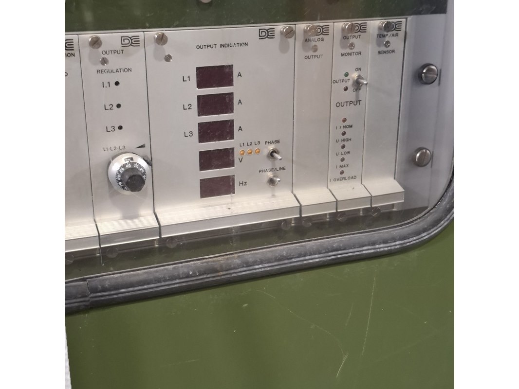 Merk: De Drie Electronics Product: Omvormer Afmeting: lxbxh ca. 123x61x115 cm Conditie: gebruikt Specificaties: Output 115/200 400Hz Technische staat en compleetheid onbekend. Exclusief pallet.