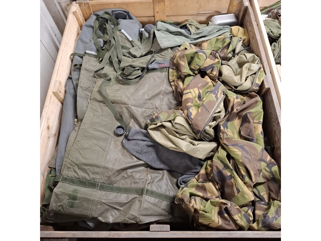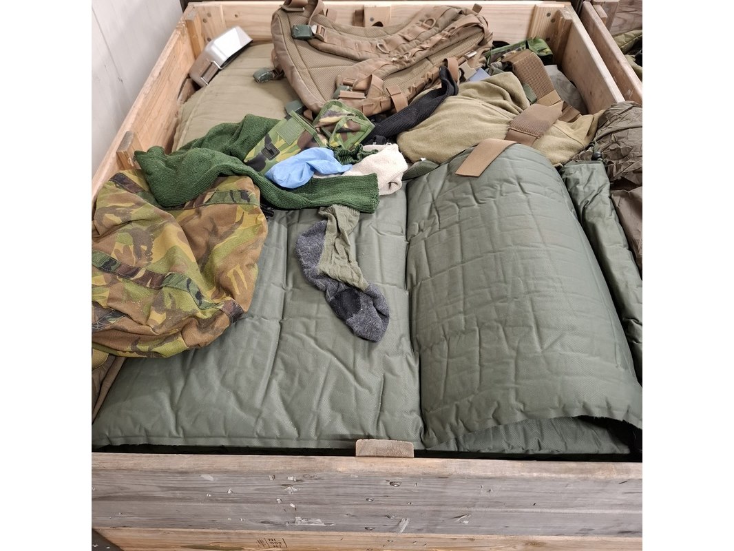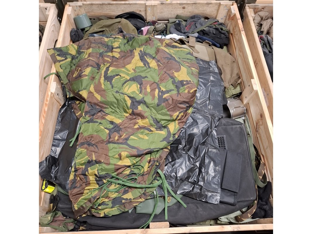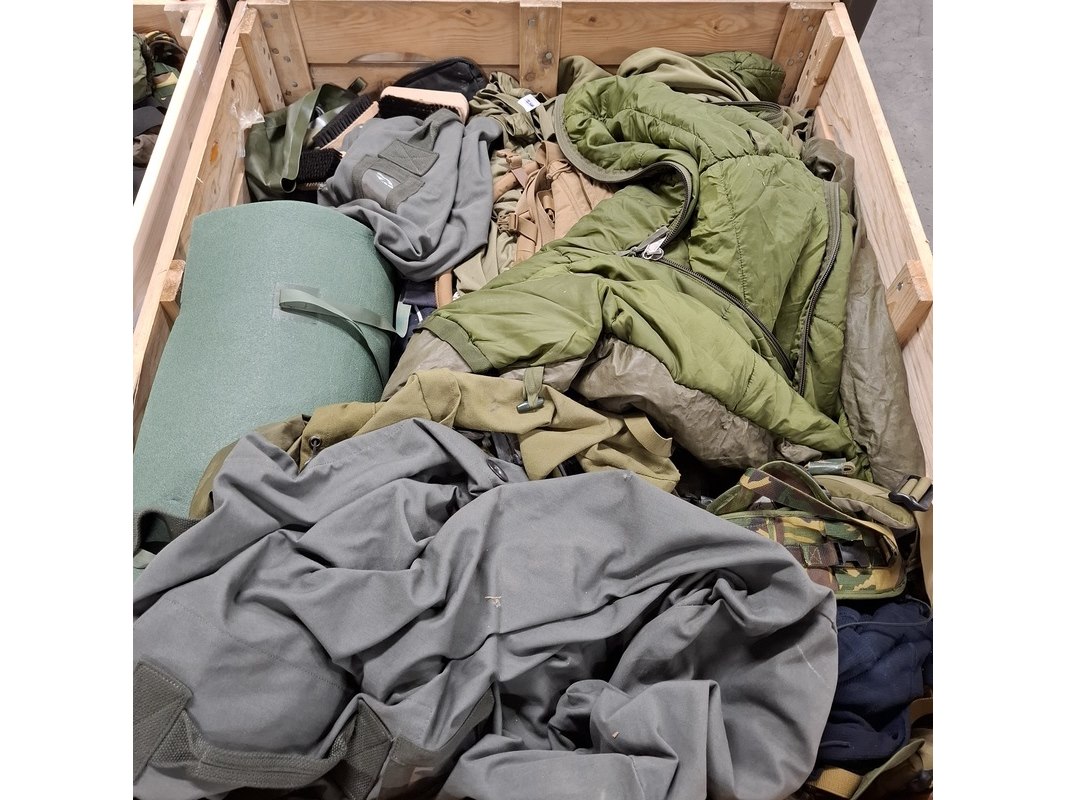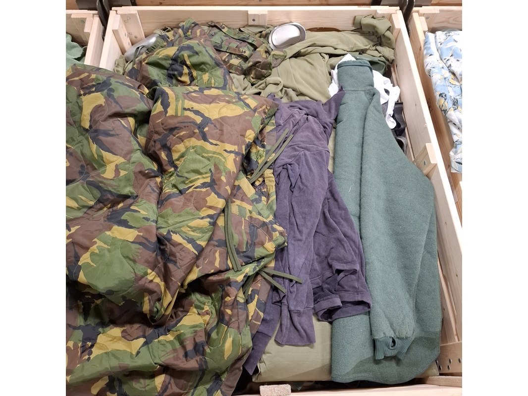Product: Persoonlijke uitrusting en kleding Defensie Conditie: gebruikt Specificaties: Bestaande uit ca. 34x palletbox ongesorteerde artikelen.