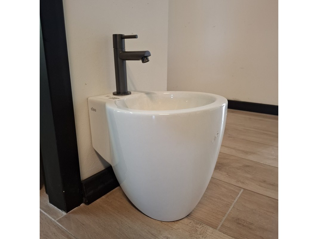 Merk: Clou Product: Fonteinset Specificaties: fontein, keramiek, wit, fonteinkraan, mat zwart