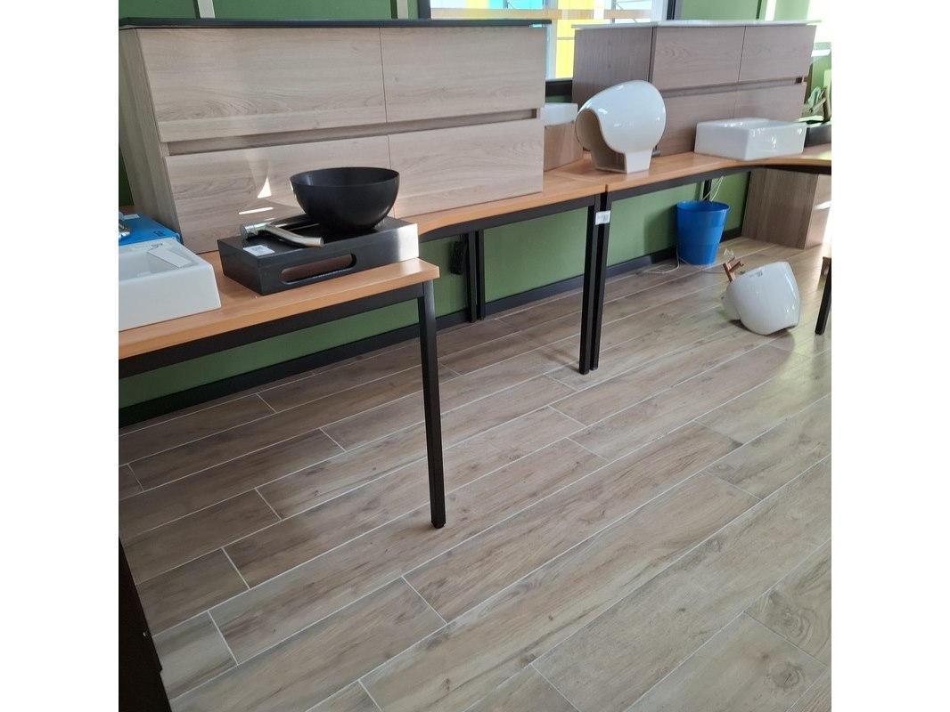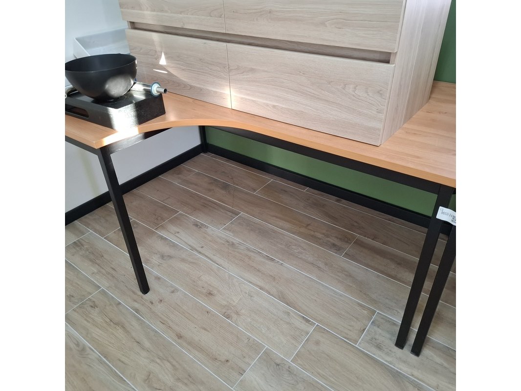 Product: Bureau-tafel Materiaal: eiken Afmeting: 180x80x(120)cm Specificaties: 1x links, 1x rechts, mat zwart onderstel