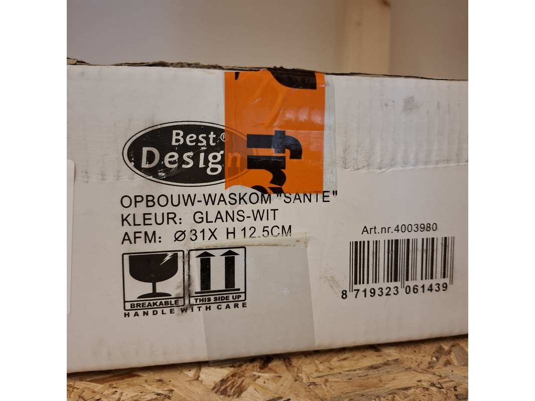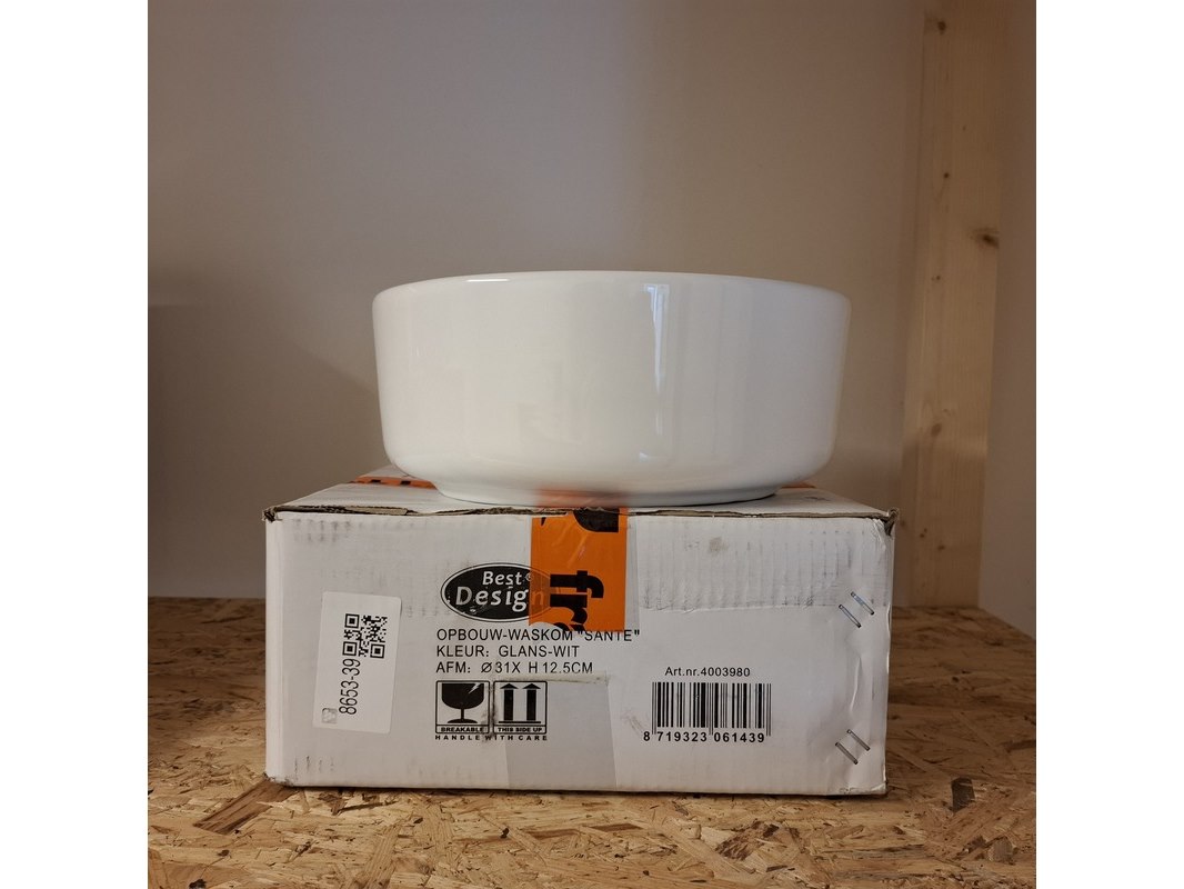 Merk: Best Design Product: Waskom Kleur: glans wit Materiaal: keramiek Afmeting: Ø 31x12.5cm