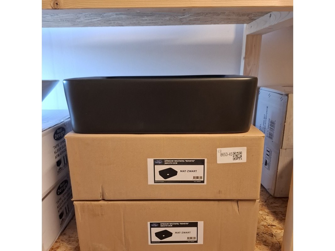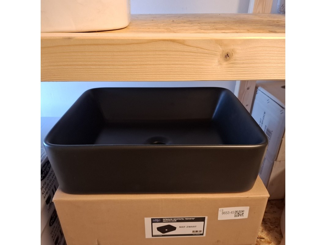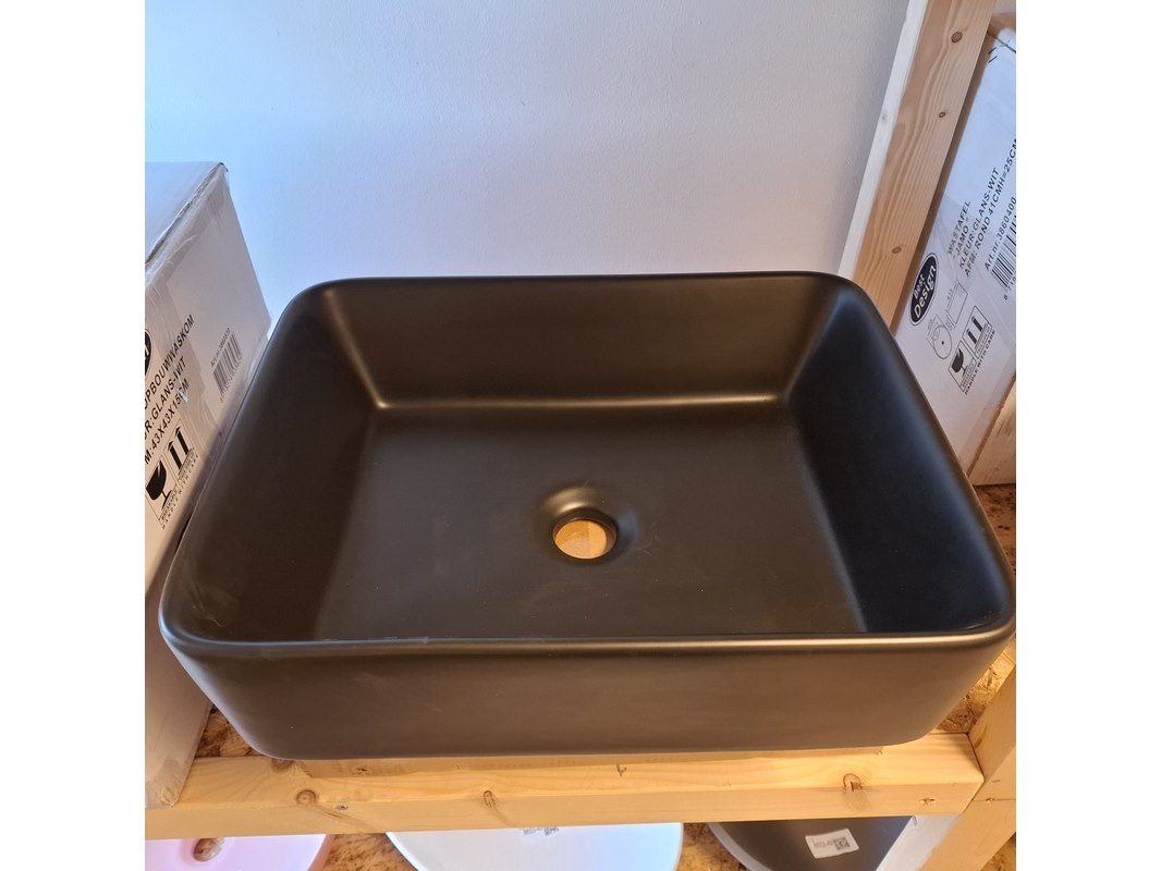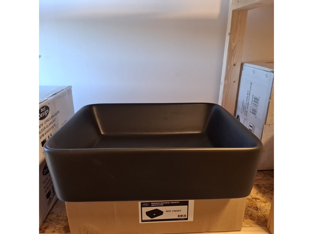 Merk: Best Design Product: Waskom Kleur: mat zwart Materiaal: keramiek Afmeting: 48x37x13cm