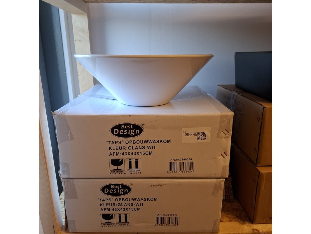 Merk: Best Design Product: Waskom Kleur: glans wit Materiaal: keramiek Afmeting: Ø43x15cm
