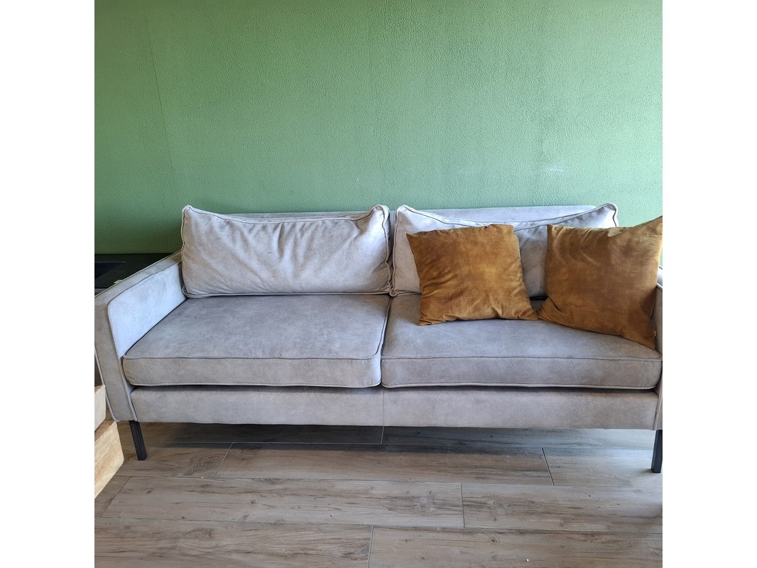 Product: 2-Zitsbank Kleur: grijs Materiaal: fluweel Specificaties: 200cm, diepte 90cm, incl. kussens