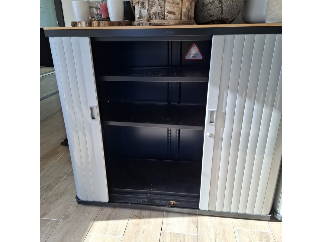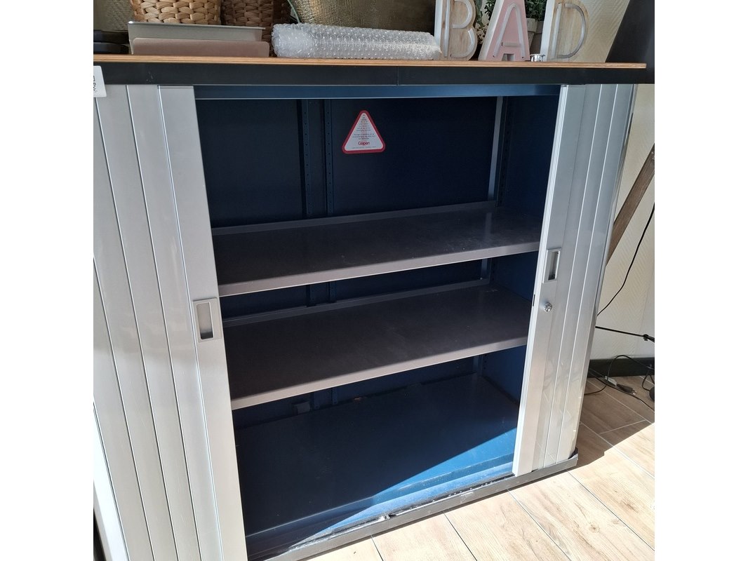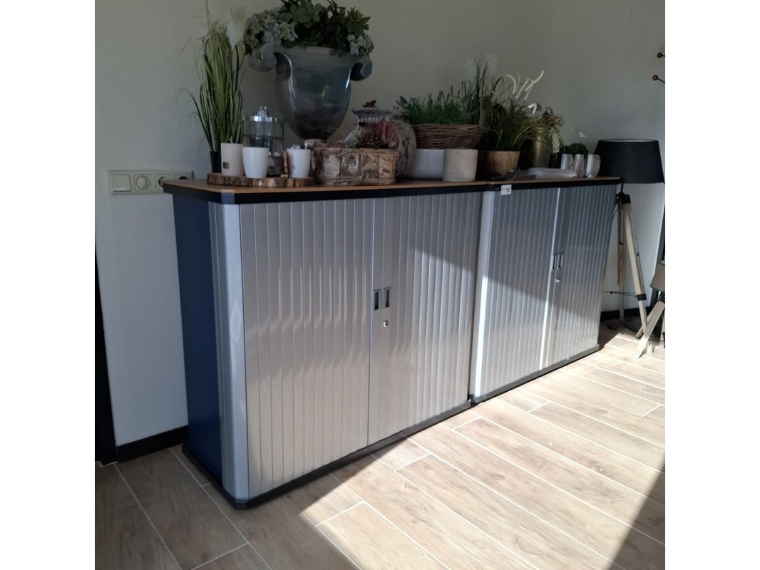 Merk: Gispen Product: Jaloeziekast Kleur: aluminium Afmeting: 120x50cm Specificaties: hoogte 105cm