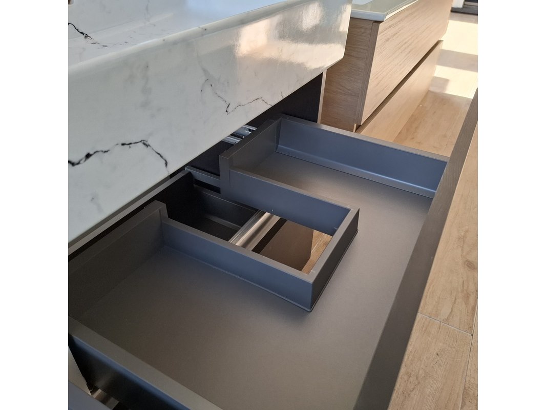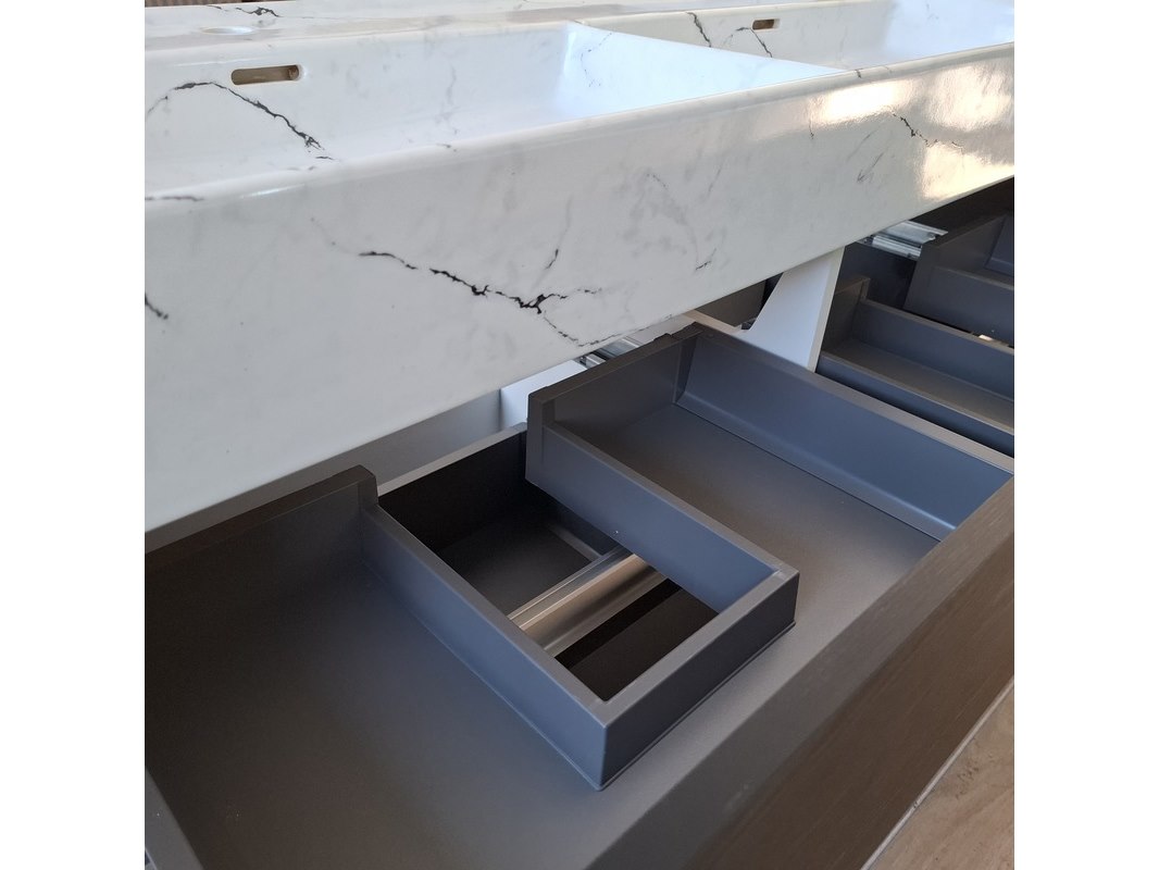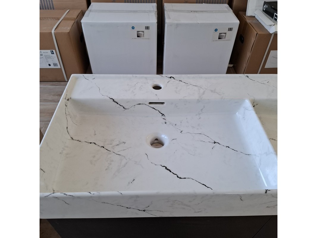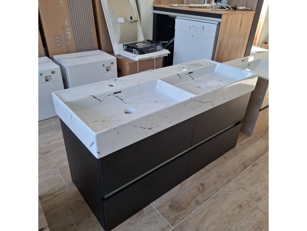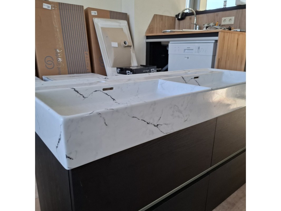 Merk: HR Badmeubelen Product: Badmeubel Kleur: black oak Afmeting: 120x46cm Specificaties: 4 lades met softclose, greeploos, wastafel, keramiek, calcatta
