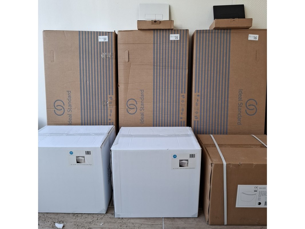 Merk: Ideal Standard Product: WC-set Kleur: glans wit Specificaties: 1x IDEAL STANDARD inbouwreservoir PROSYS R009467, 1 x bedieningspaneel OLEAS M2 glans wit, 1 x wandcloset HR SQUARRED, glanswit, RIMFREE, deksel/zitting met softclose en quickrelease