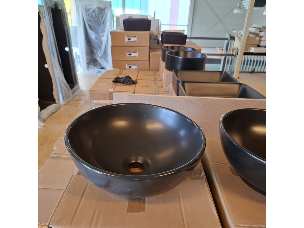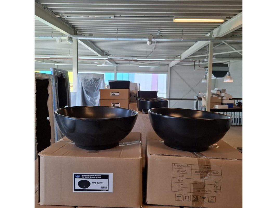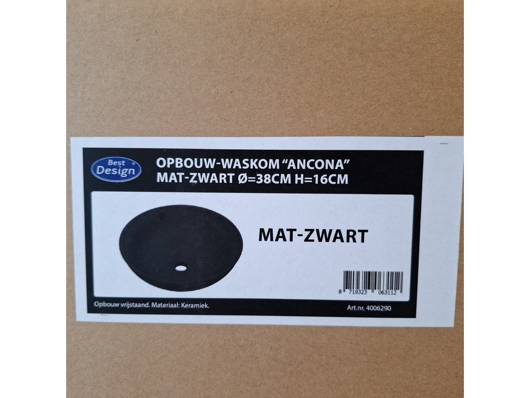 Merk: Best Design Product: Waskom Kleur: mat zwart Materiaal: keramiek Afmeting: Ø 38x16cm Specificaties: art.nr. 4006290, EAN 8719323063112