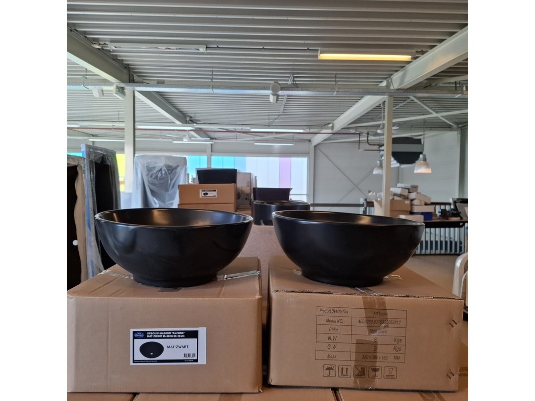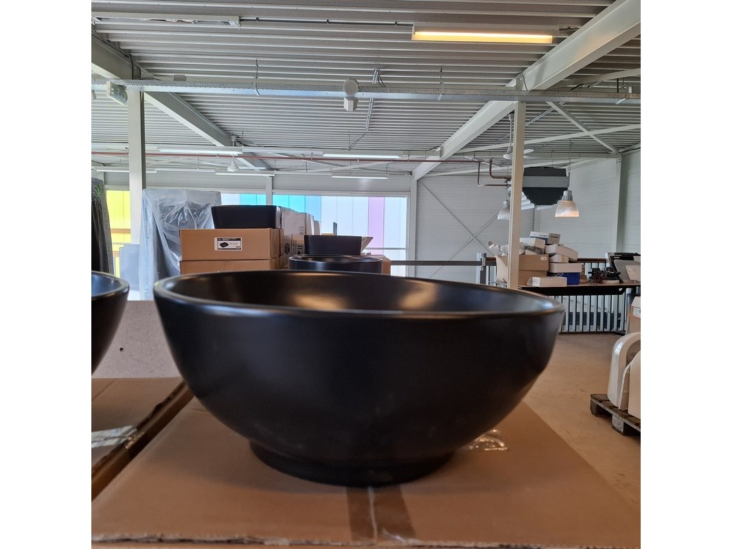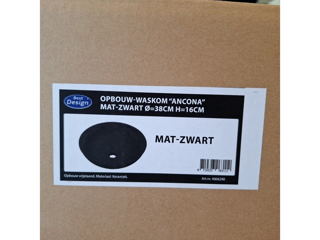 Merk: Best Design Product: Waskom Kleur: mat zwart Materiaal: keramiek Afmeting: Ø 38x16cm Specificaties: art.nr. 4006290, EAN 8719323063112