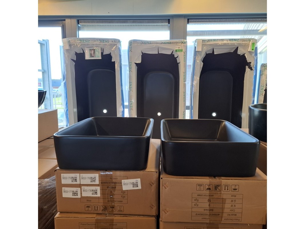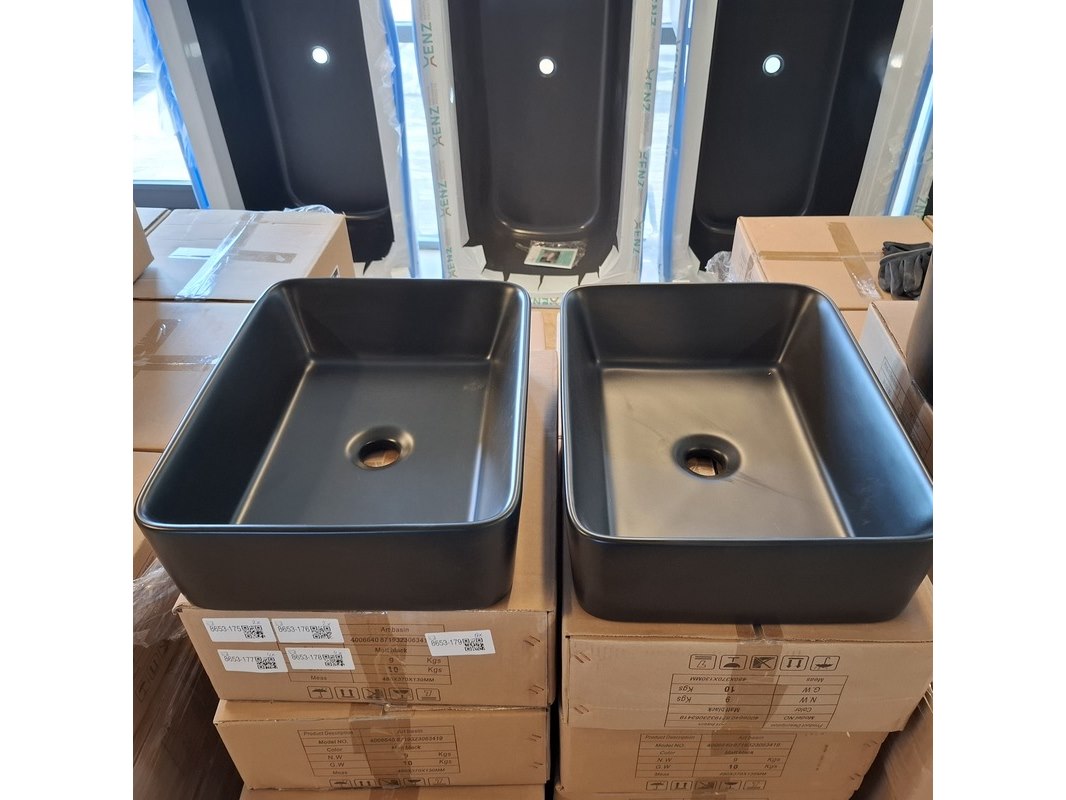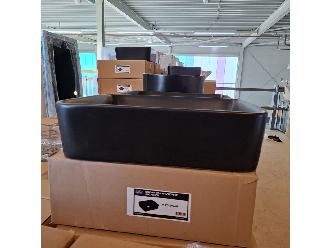 Merk: Best Design Product: Waskom Kleur: mat zwart Materiaal: keramiek Afmeting: 48x37x13cm Specificaties: art.nr. 4006640, EAN 8719323063419