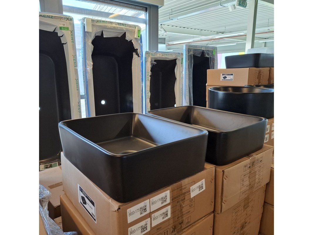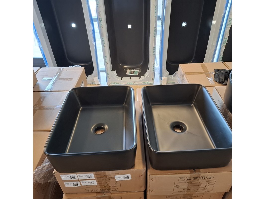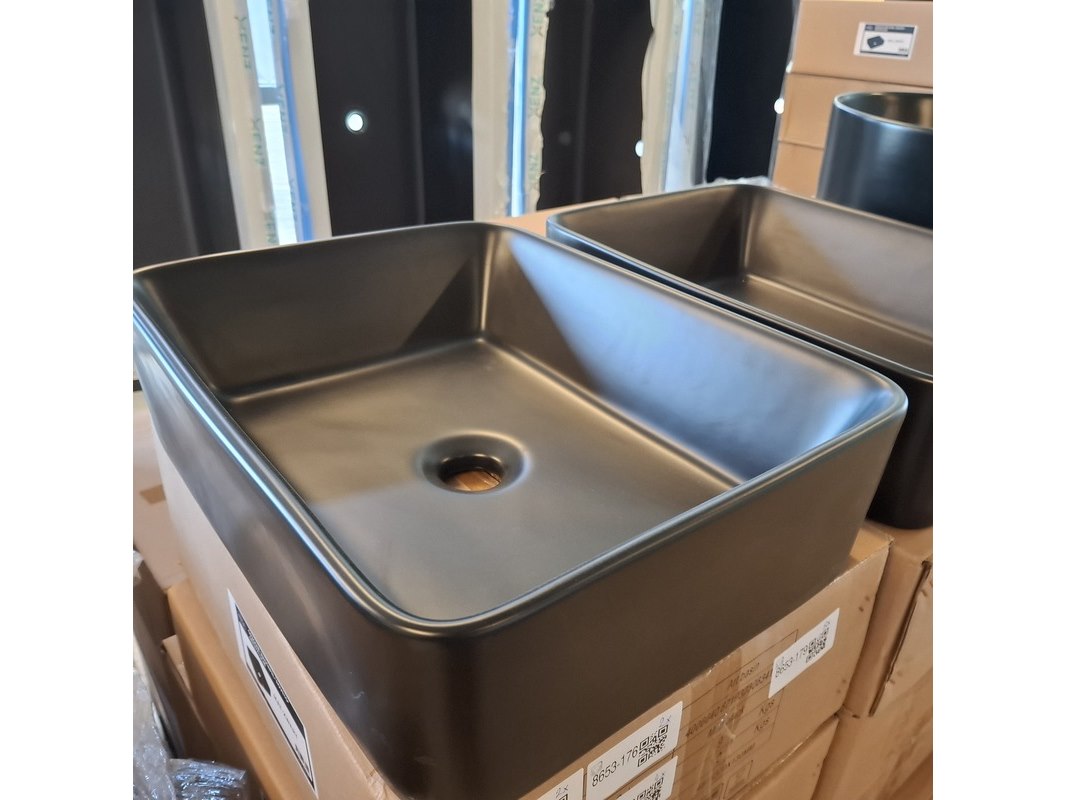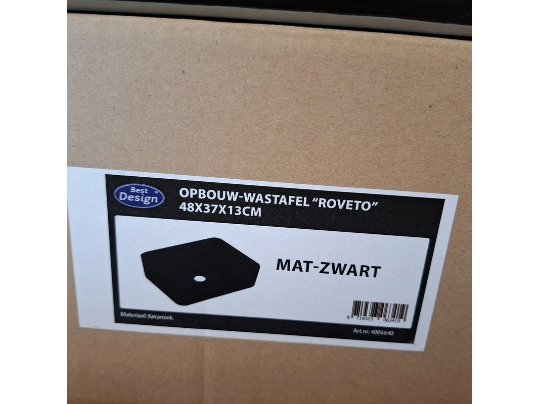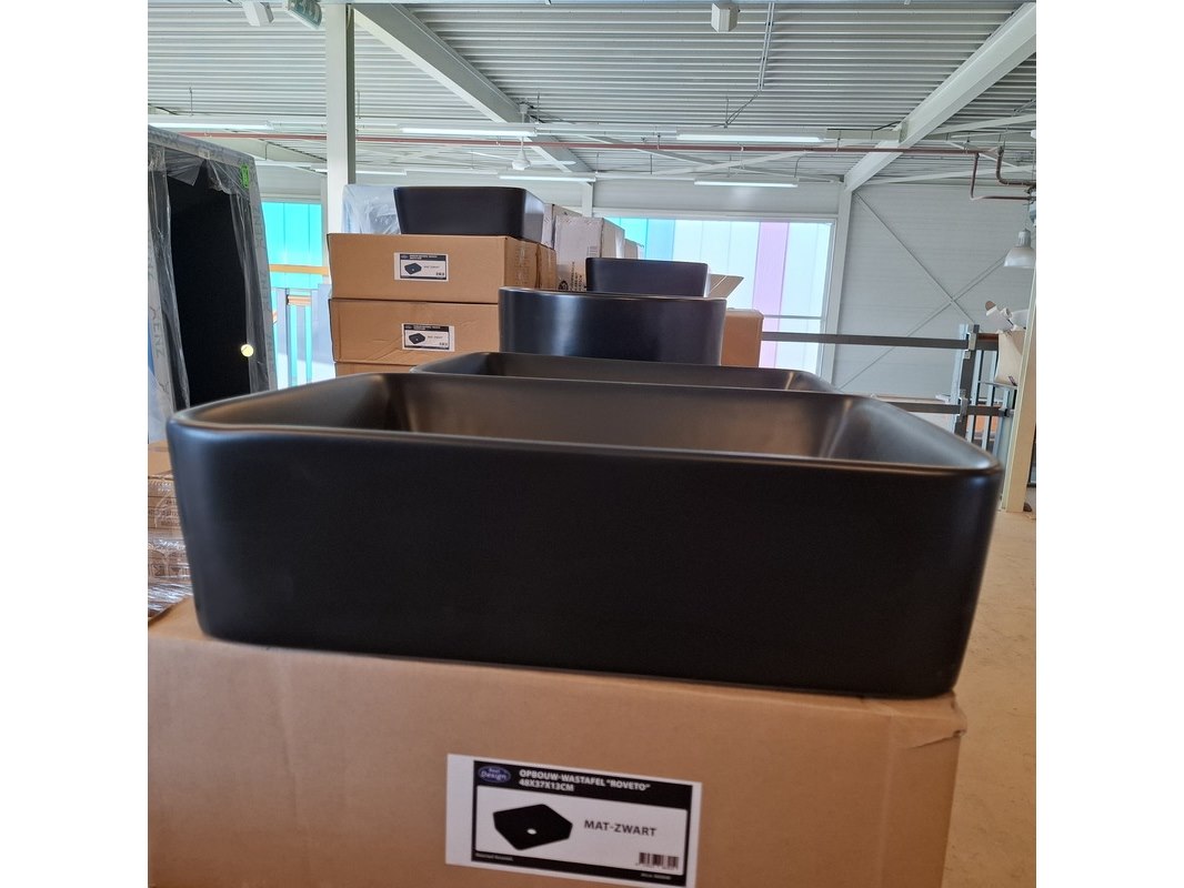 Merk: Best Design Product: Waskom Kleur: mat zwart Materiaal: keramiek Afmeting: 48x37x13cm Specificaties: art.nr. 4006640, EAN 8719323063419