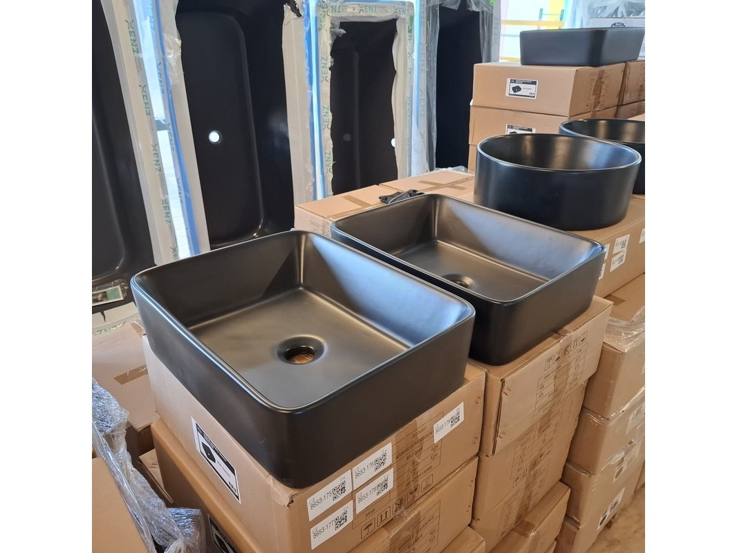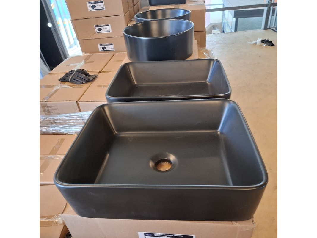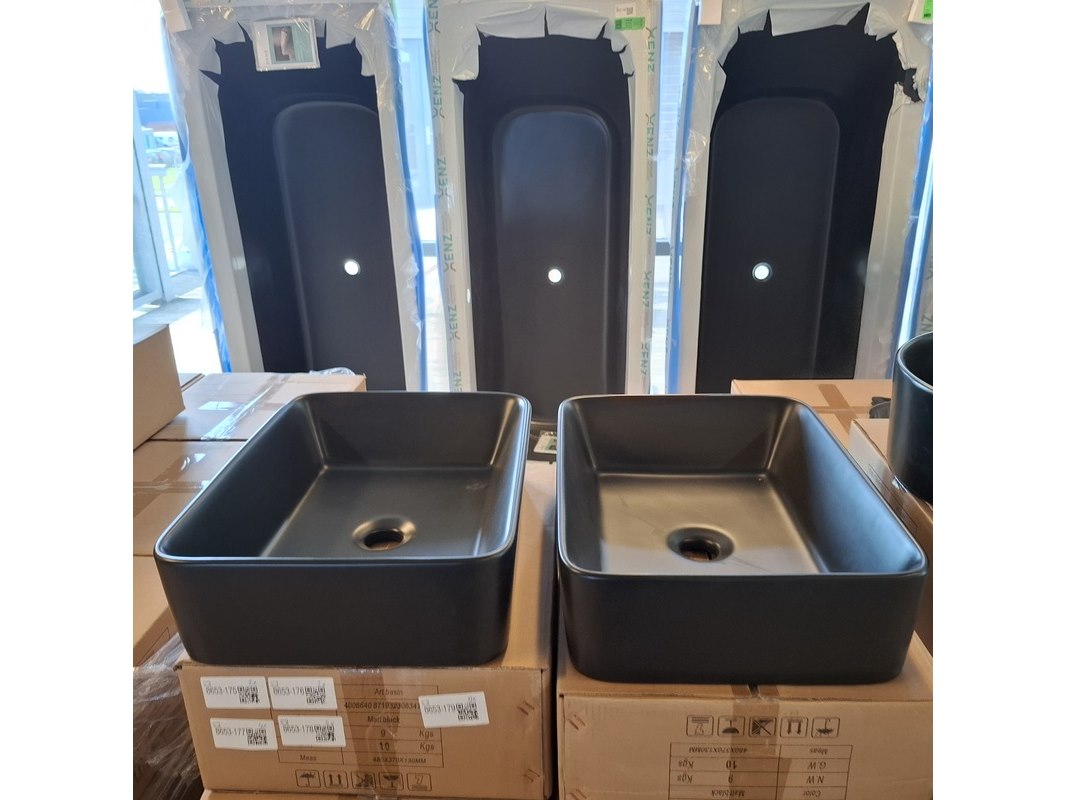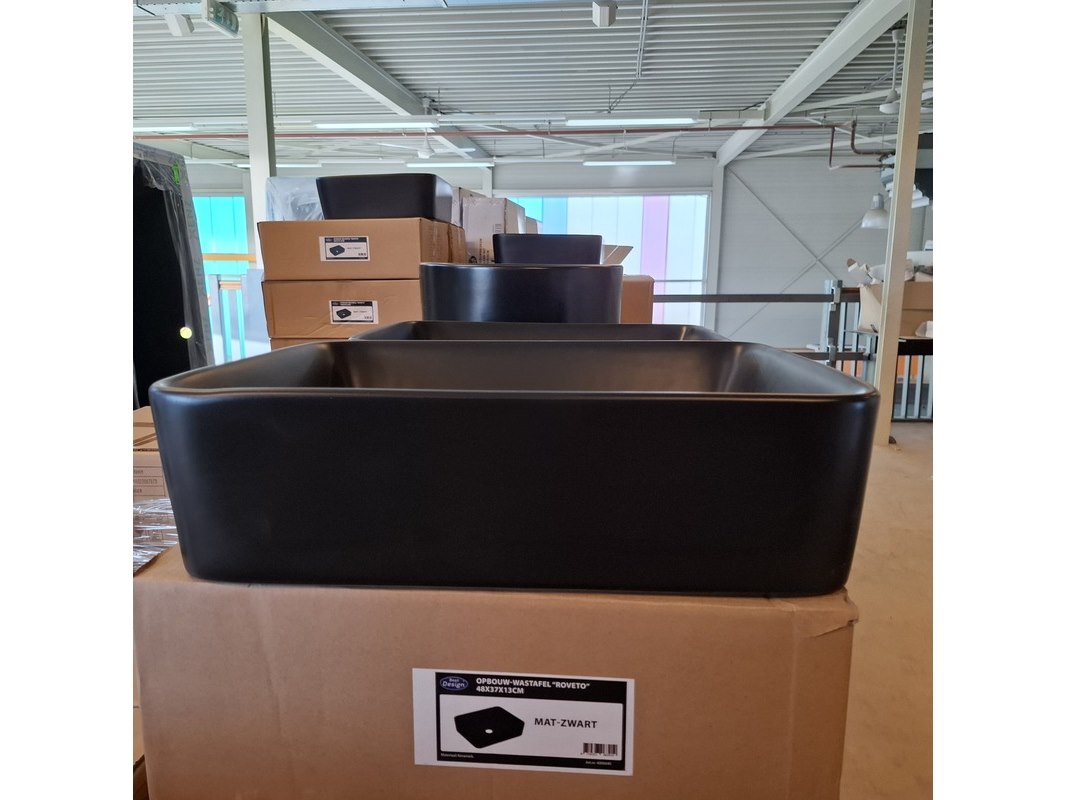 Merk: Best Design Product: Waskom Kleur: mat zwart Materiaal: keramiek Afmeting: 48x37x13cm Specificaties: art.nr. 4006640, EAN 8719323063419