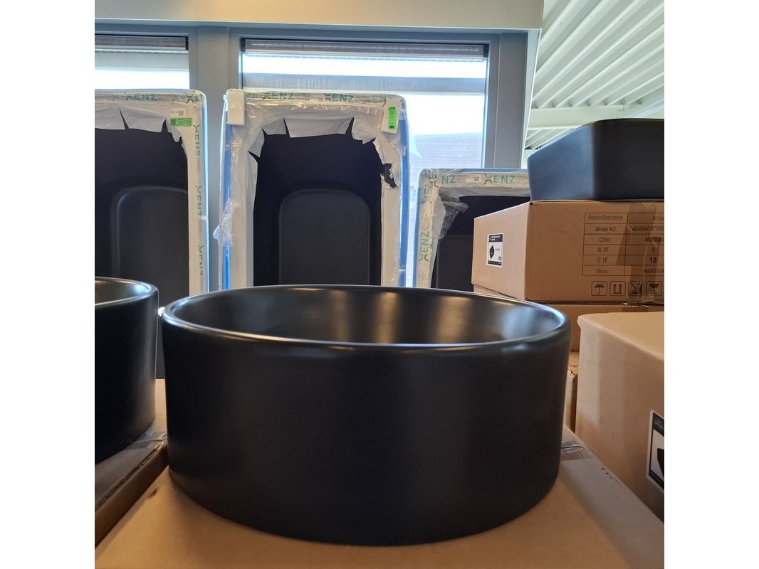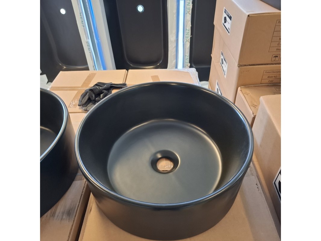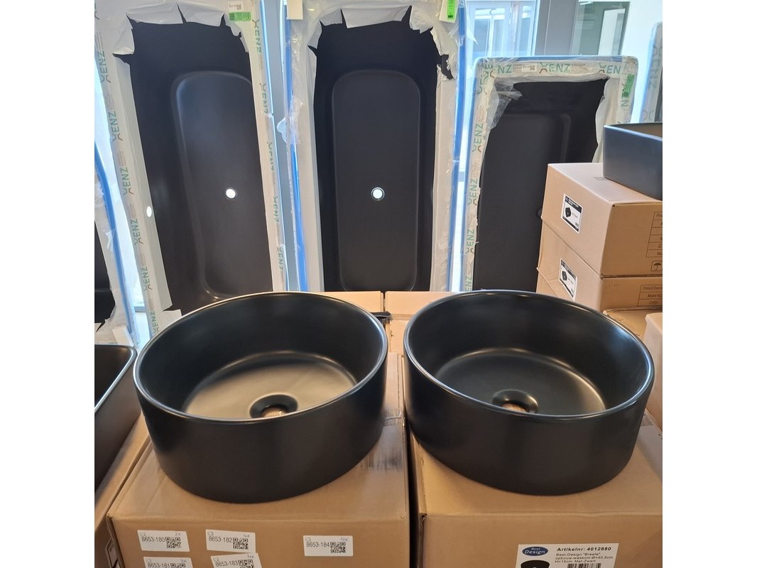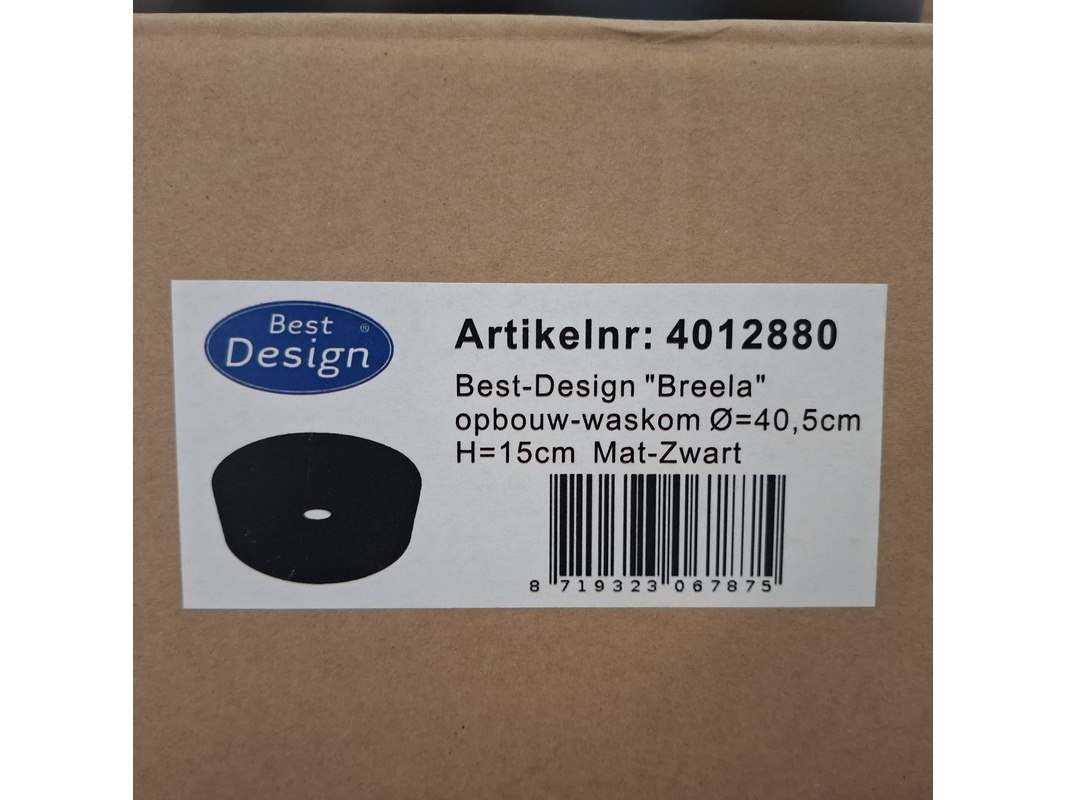 Merk: Best Design Product: Waskom Kleur: mat zwart Materiaal: keramiek Afmeting: Ø 40.5x15cm Specificaties: art.nr. 4012880, EAN 8719323067875