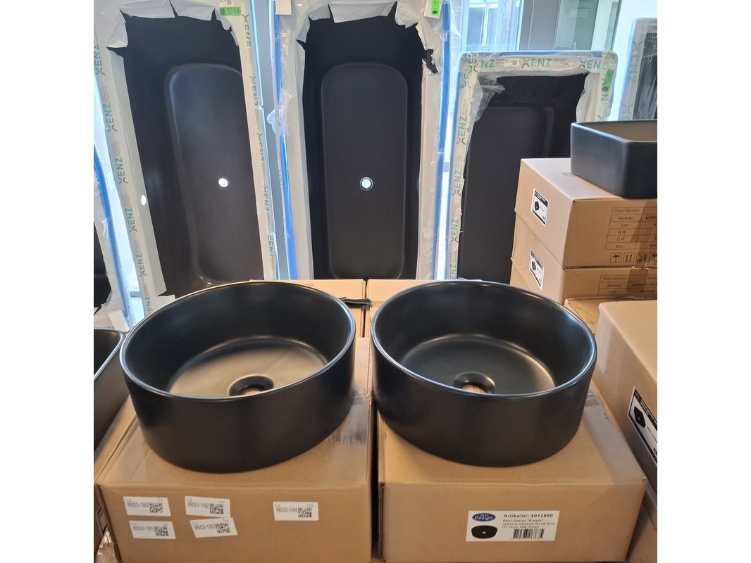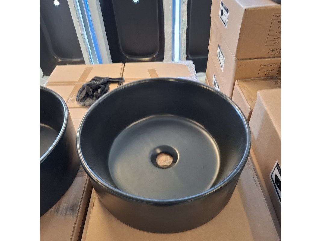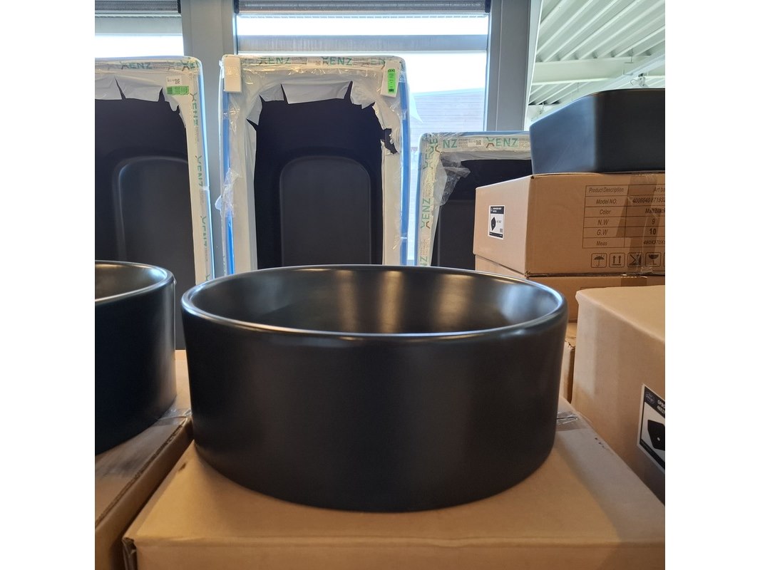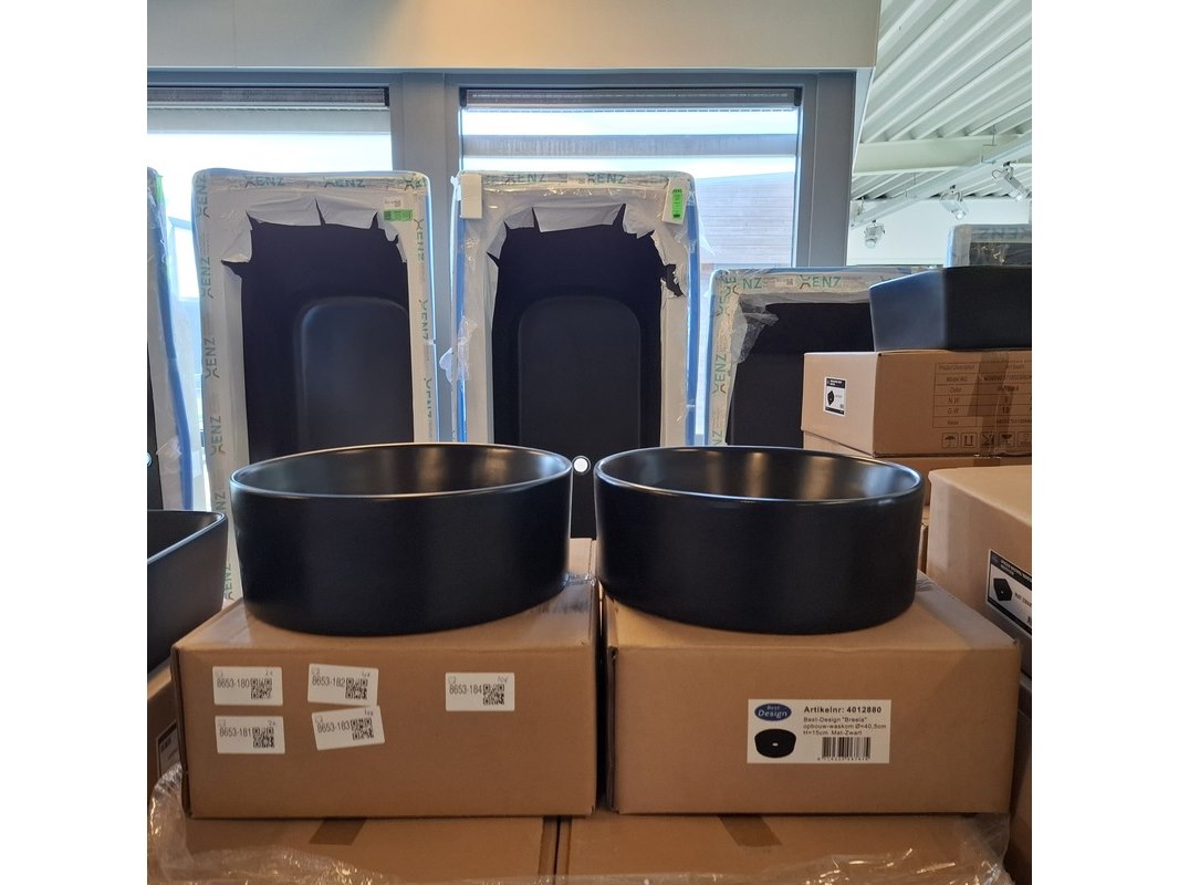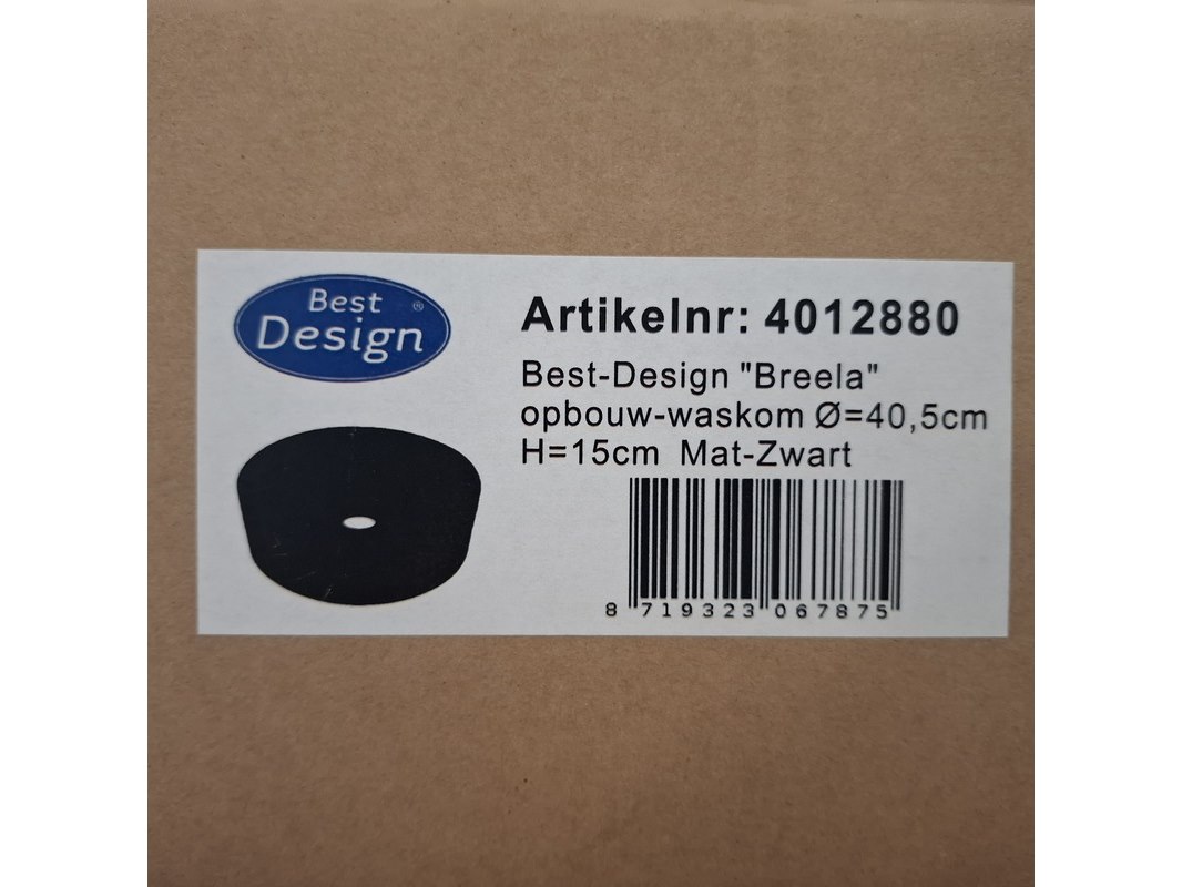 Merk: Best Design Product: Waskom Kleur: mat zwart Materiaal: keramiek Afmeting: Ø 40.5x15cm Specificaties: art.nr. 4012880, EAN 8719323067875