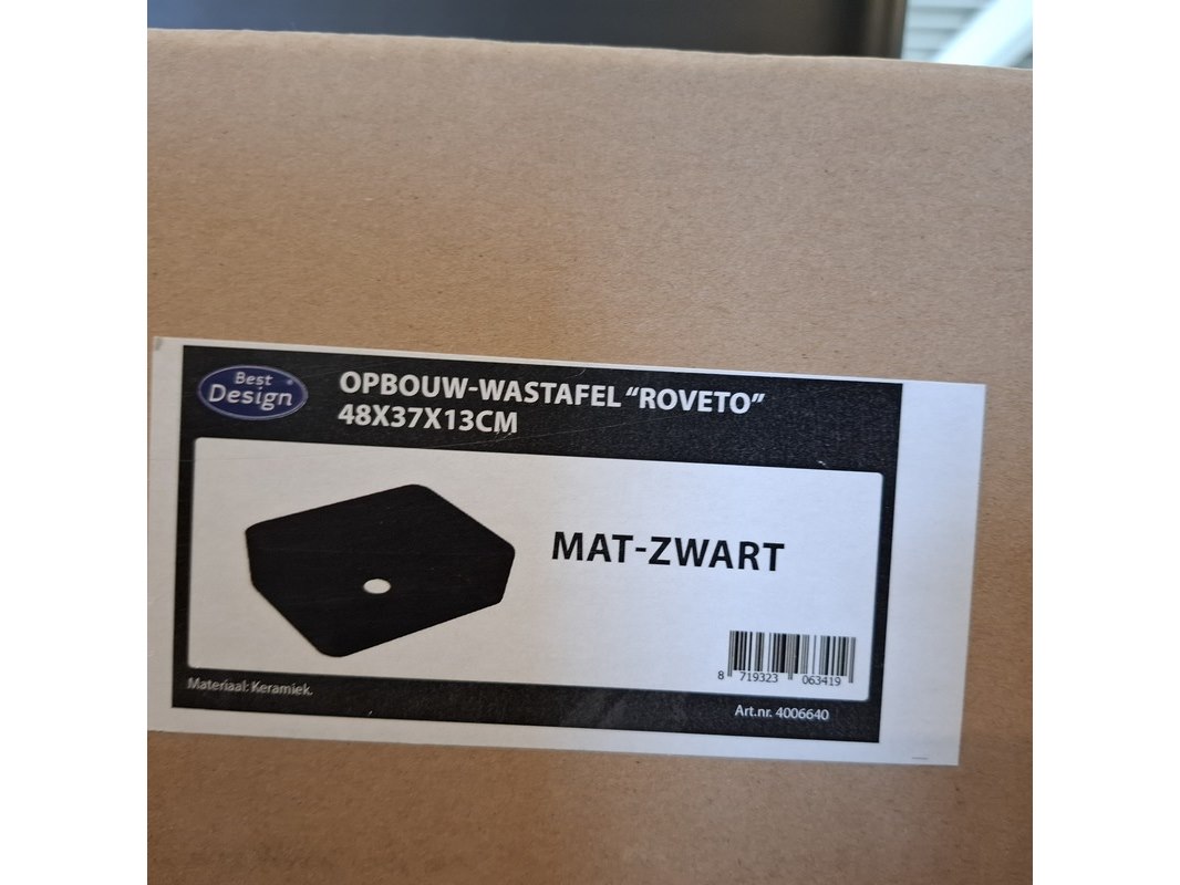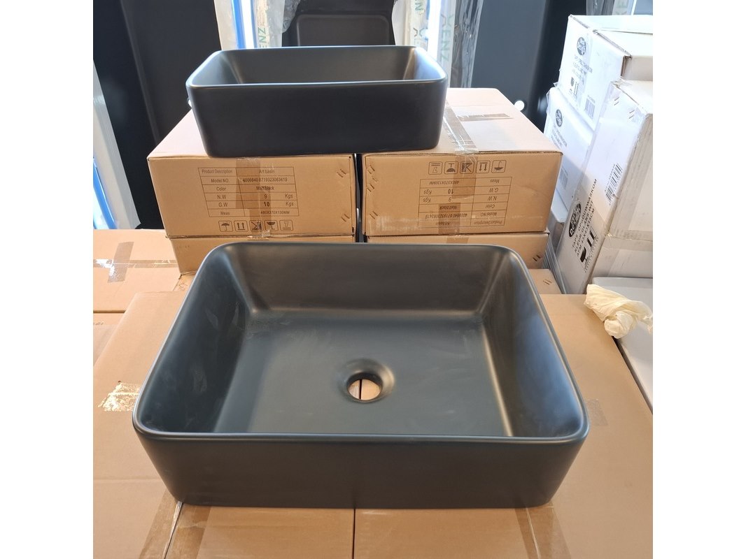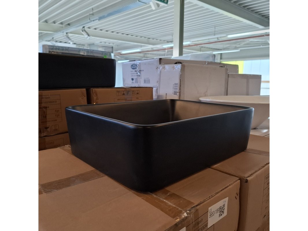 Merk: Best Design Product: Waskom Kleur: mat zwart Materiaal: keramiek Afmeting: 48x37x13cm Specificaties: art.nr. 4006640, EAN 8719323063419