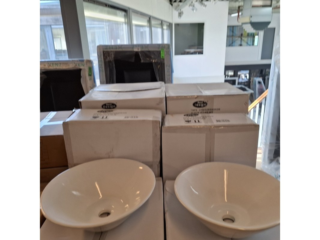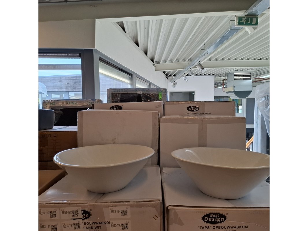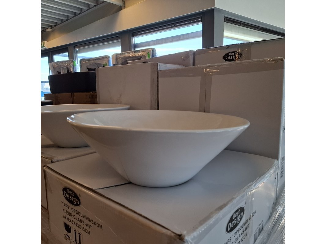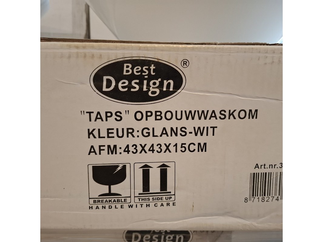 Merk: Best Design Product: Waskom Kleur: glans wit Materiaal: keramiek Afmeting: Ø 43x15cm Specificaties: art.nr. 3860530, EAN 8718274535624