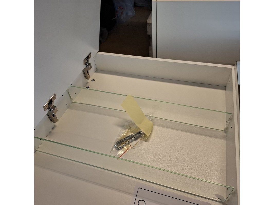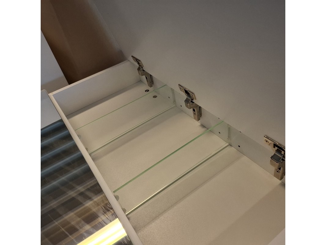 Product: Spiegelkast Kleur: glans wit Afmeting: 90x70x13cm Specificaties: 2 deurtjes met softclose, met verlichtingsset
