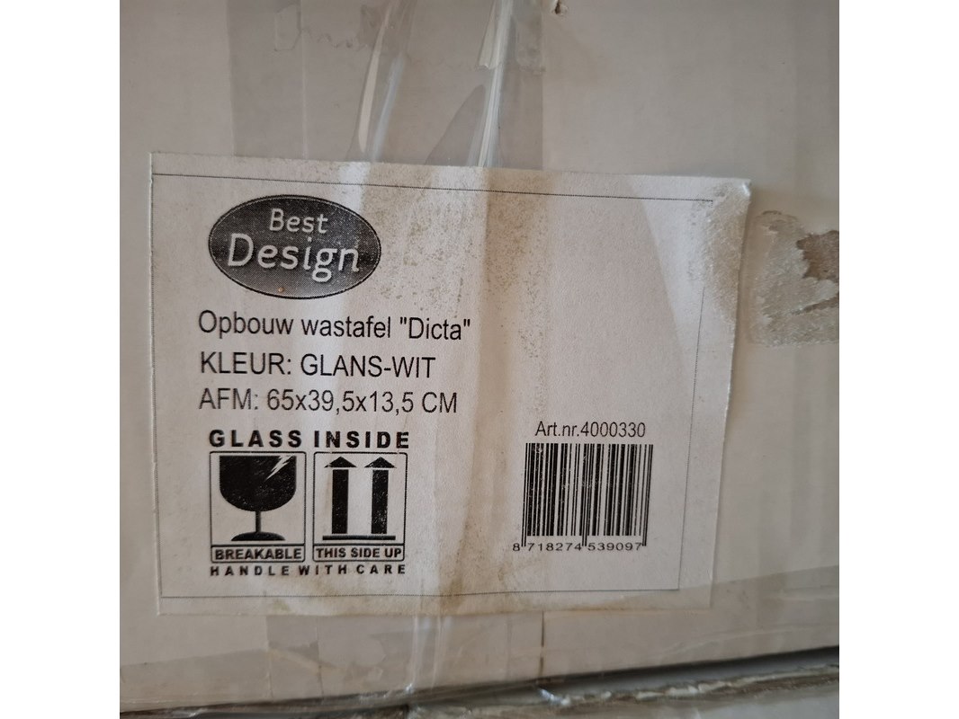 Merk: Best Design Product: Waskom Kleur: glans wit Materiaal: keramiek Afmeting: 65x39.5x13.5cm Specificaties: art.nr. 4000330, EAN 8718274539097